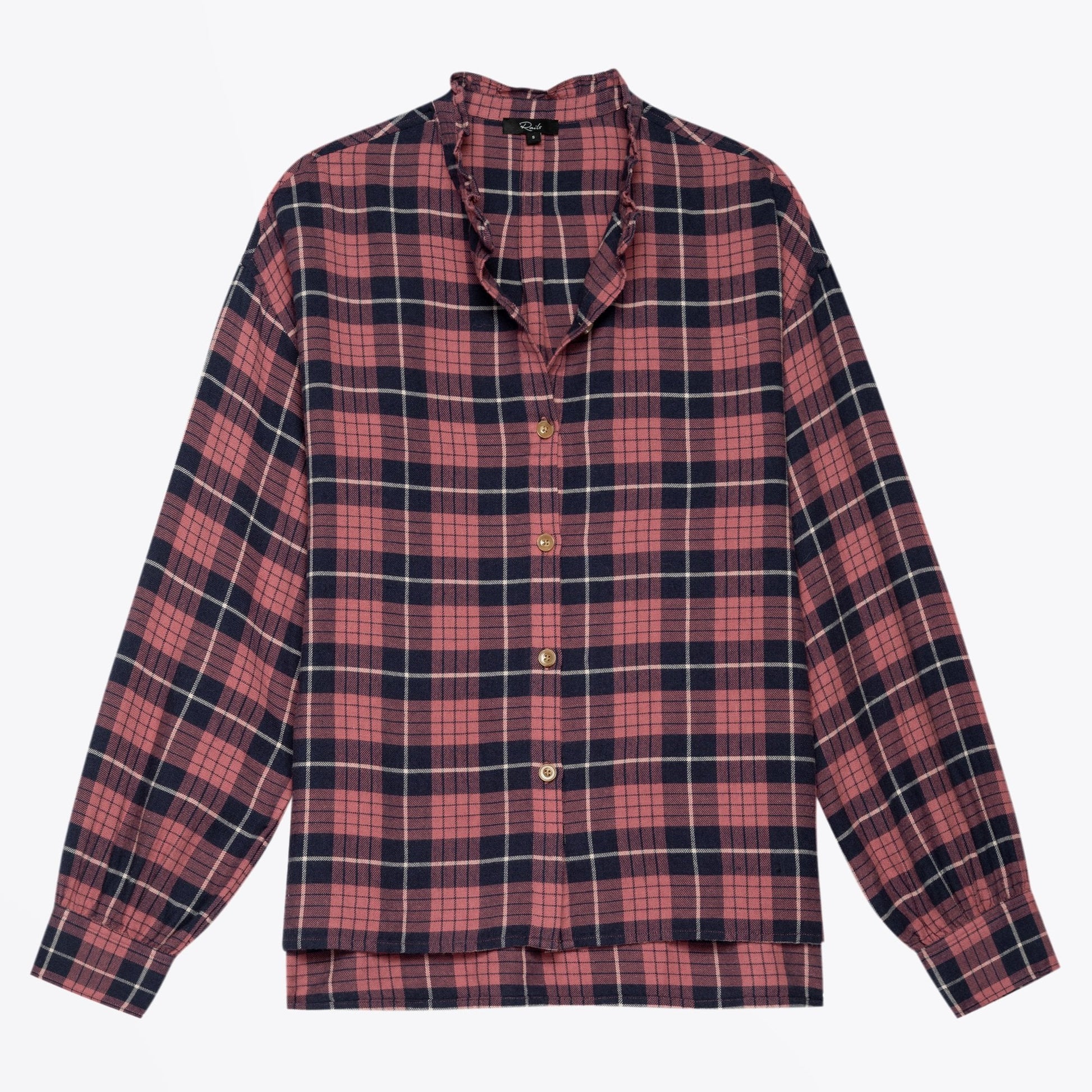 Relaxed and refined label, Rails is synonymous with accessible luxury by using premium fabrications in classic silhouettes, and has quickly evolved into a global lifestyle brand. This lightweight, cotton shirt drapes beautifully to create a relaxed feminine silhouette for effortless style and a flattering fit. This button-down shirt with relaxed fit features a dark pink and dark blue plaid and ruffle detail at neckline. A perfect work-to-weekend option you can wear all year-round.