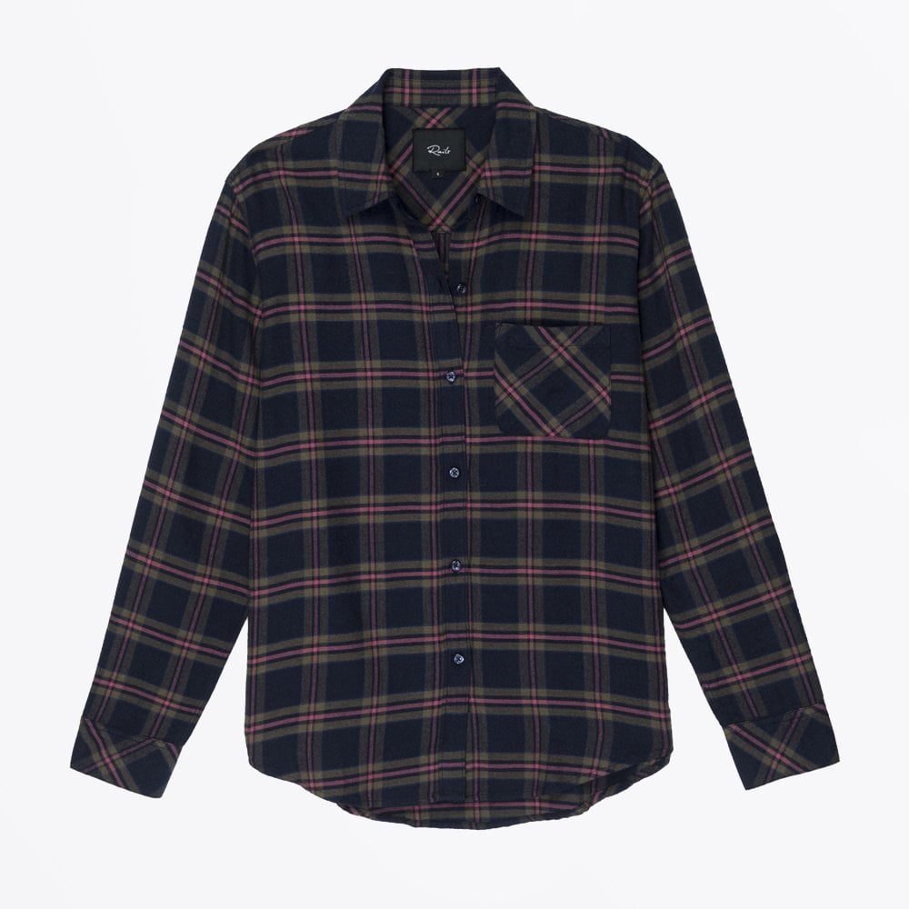 - Angelica - Flannel Plaid Shirt - Navy/Pink