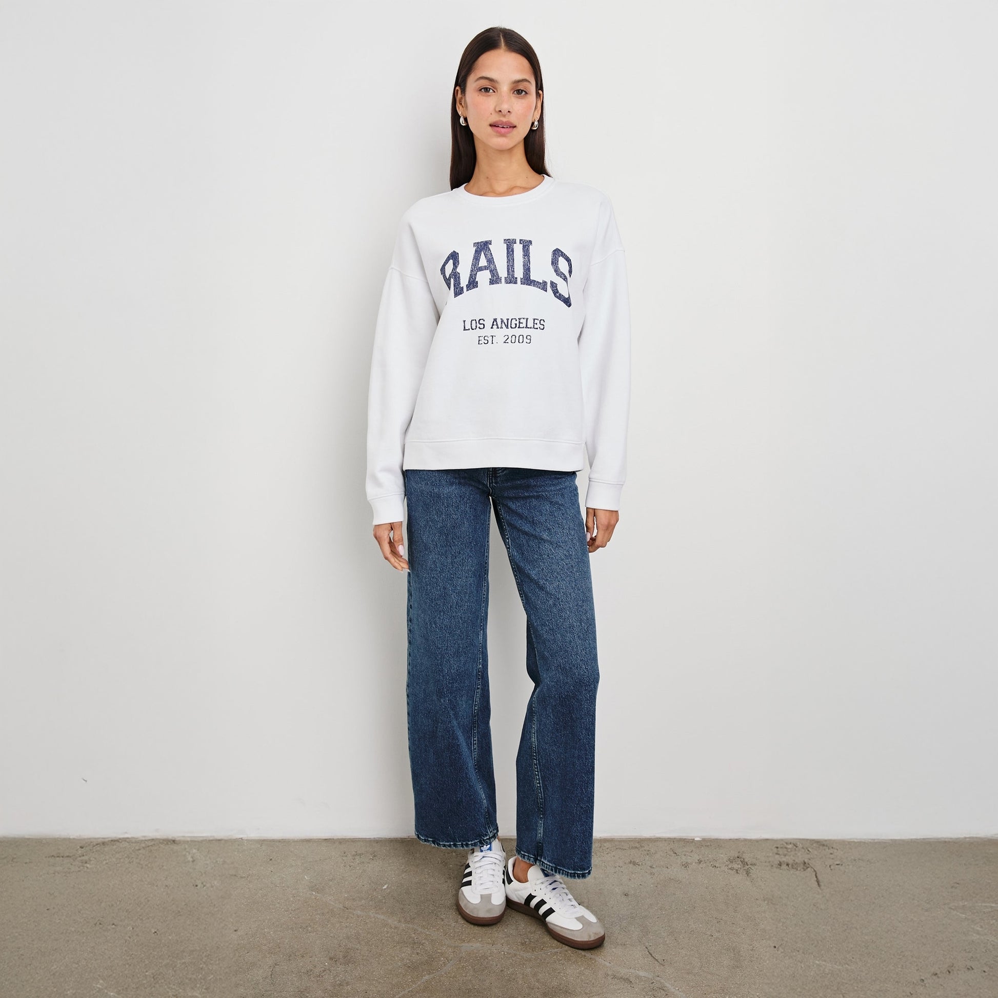Relaxed and refined label, Rails is synonymous with accessible luxury by using premium fabrications in classic silhouettes, and has quickly evolved into a global lifestyle brand. This long sleeve, relaxed fit pullover style sweatshirt drapes beautifully to create an effortless style and a flattering fit. This Anniversary sweatshirt features dropped shoulder and an ultra soft feel with vintage RAILS logo. A versatile piece that will take you from gym to brunch.