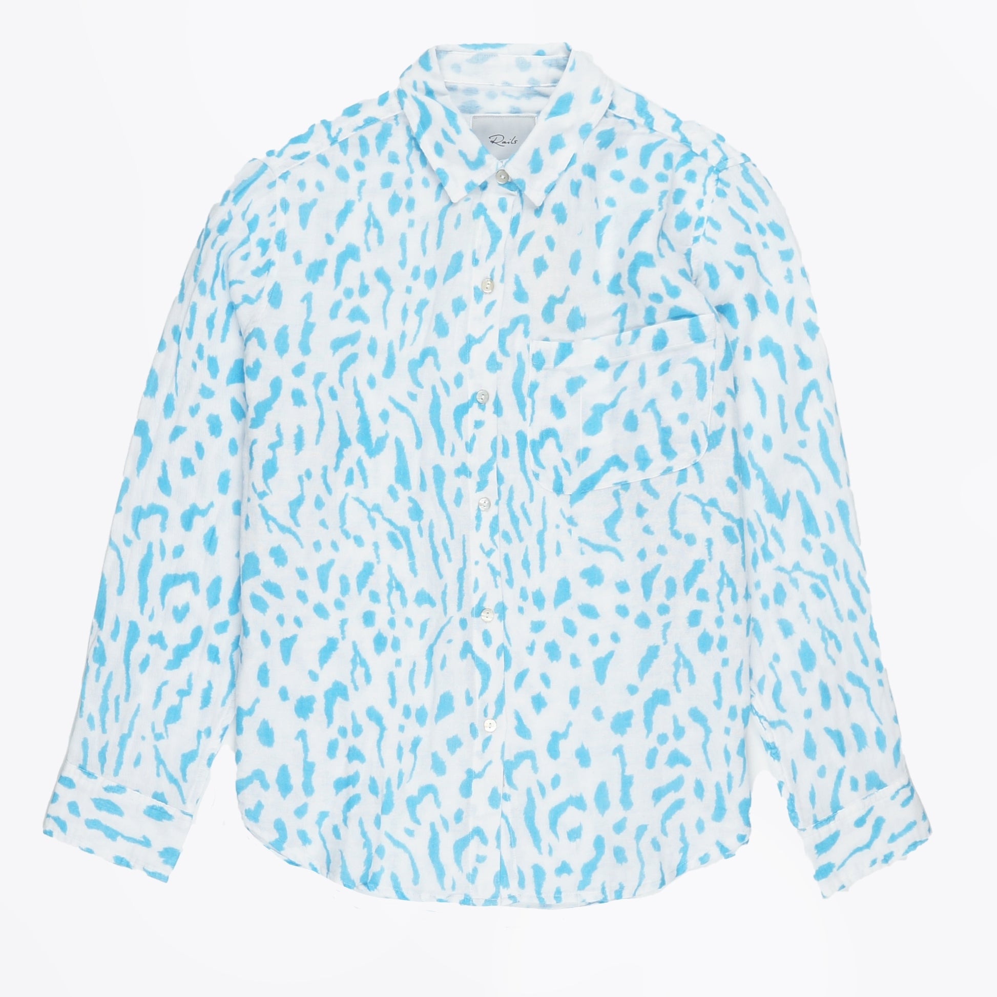 Relaxed and refined label, Rails is synonymous with accessible luxury by using premium fabrications in classic silhouettes and has quickly evolved into a global lifestyle brand. Adding a fun print to your summer tops, this organic cotton shirt features a sky blue cheetah print throughout. This shirt wonderfully soft also has long sleeves, a collared neckline, a button-down fastening, and a breast patch pocket. Style this shirt with your favourite pair of jeans and some Veja trainers for a great casual look.