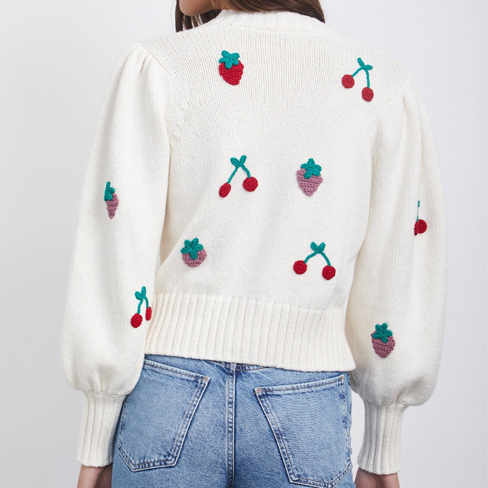 Relaxed and refined label, Rails is synonymous with accessible luxury by using premium fabrications in classic silhouettes and has quickly evolved into a global lifestyle brand. This fantastically soft shirt is a great addition to any new season wardrobe. Add a touch of whimsy to your knitwear collection, this cardigan features crochet fruits appliqued onto the jumper, with ribbed cuffs, ribbed hem, and a ribbed neckline. Wear this cardigan over button-down shirt, and some wide leg jeans.