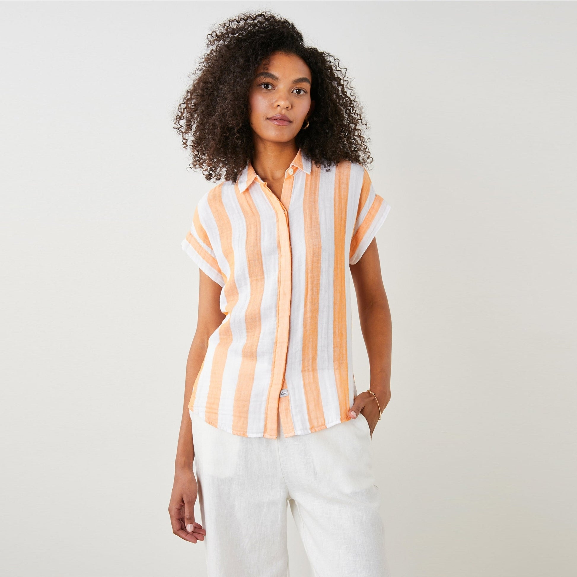 Relaxed and refined label, Rails is synonymous with accessible luxury by using premium fabrications in classic silhouettes and has quickly evolved into a global lifestyle brand. Adding a quirky touch to your summer tops, this Jamie short-sleeved shirt features a broad orange and white stripe design. This shirt has short sleeves, a collared neckline. Style this shirt with your favourite pair of jeans and some Veja trainers for a great casual look.