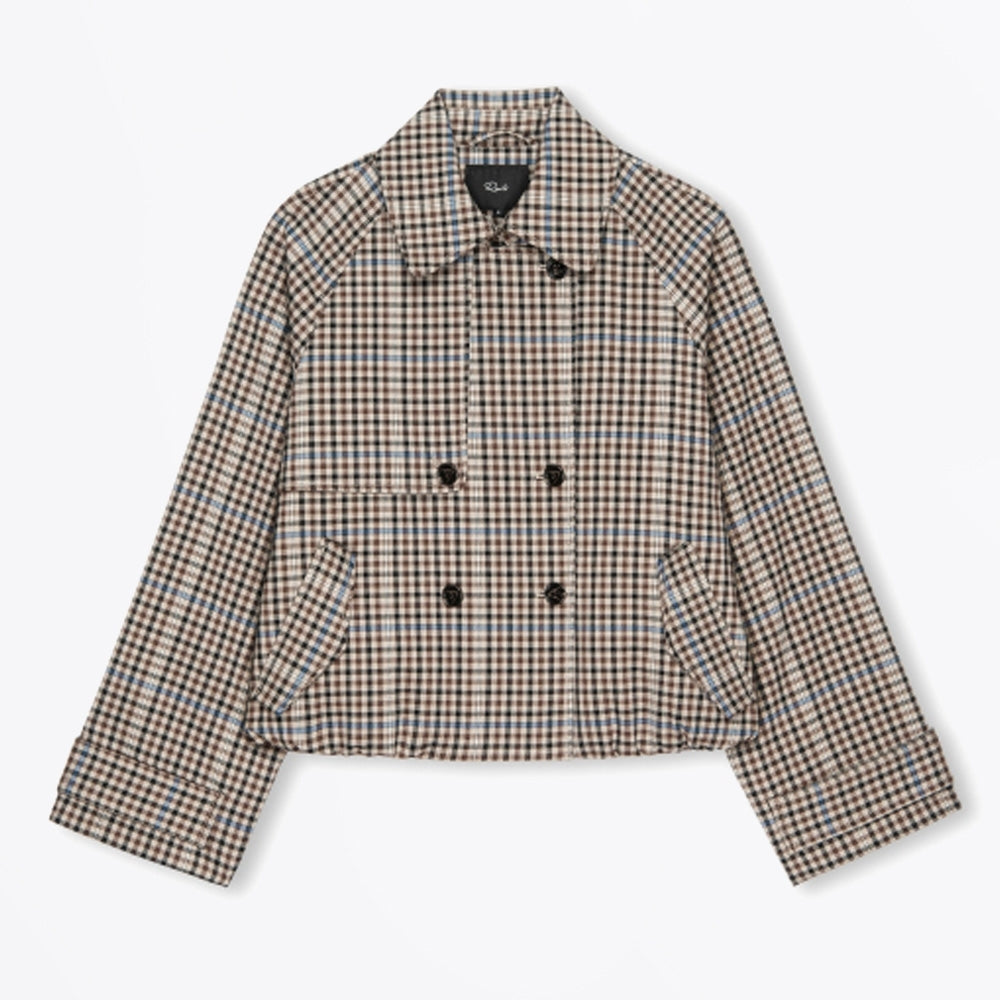 Relaxed and refined label, Rails is synonymous with accessible luxury by using premium fabrications in classic silhouettes and has quickly evolved into a global lifestyle brand. Add some luxury to your wardrobe with this fortless Jett jacket. The Rails Jett Jacket in Mocha Check is a modern take on the classic trench. This cropped jacket features a bubble hem, cuffed sleeves with adjustable snaps, and functional side pockets. It offers a comfortable fit with a touch of stretch. The Mocha Check pattern adds a stylish flair, making it a versatile piece for various occasions.