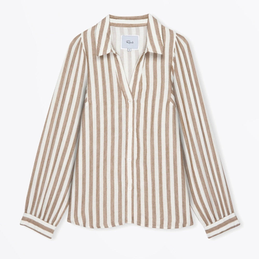 Relaxed and refined label, Rails is synonymous with accessible luxury by using premium fabrications in classic silhouettes and has quickly evolved into a global lifestyle brand. Add some laid-back styling to your summer shirts this season with this option from Rails. Crafted in a soft luxury feel cotton, this Milos stripe Lo Shirt features a classic yet relaxed feel. This signature shirt features a stripe design, collared neckline, button up fastening, and buttoned cuffs. Style this with some Rails Leighton shorts with a pair of Birkenstocks sneakers.