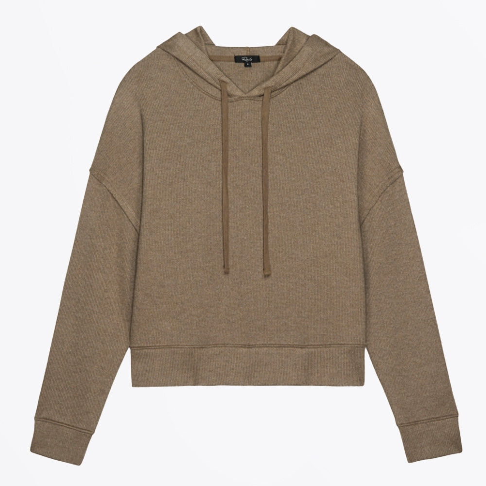 Relaxed and refined label, Rails is synonymous with accessible luxury by using premium fabrications in classic silhouettes and has quickly evolved into a global lifestyle brand. Add some luxury to your wardrobe with these effortless Nico hooded sweater. The Rails Nico Sweatshirt inHeather Latte is a plush, lounge-ready top made from a soft brushed rib fabric in a warm heather latte tone. With drop shoulders, a relaxed silhouette, and long sleeves, it’s built for effortless comfort and layering. The blend of 50% rayon, 40% nylon, and 10% polyester gives it stretch and softness, ideal for everyday wear or imperfectly polished casual looks.