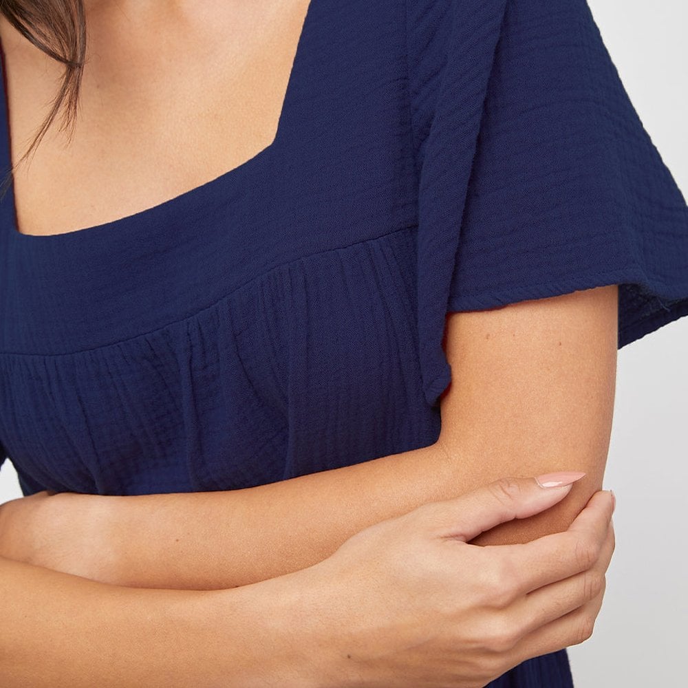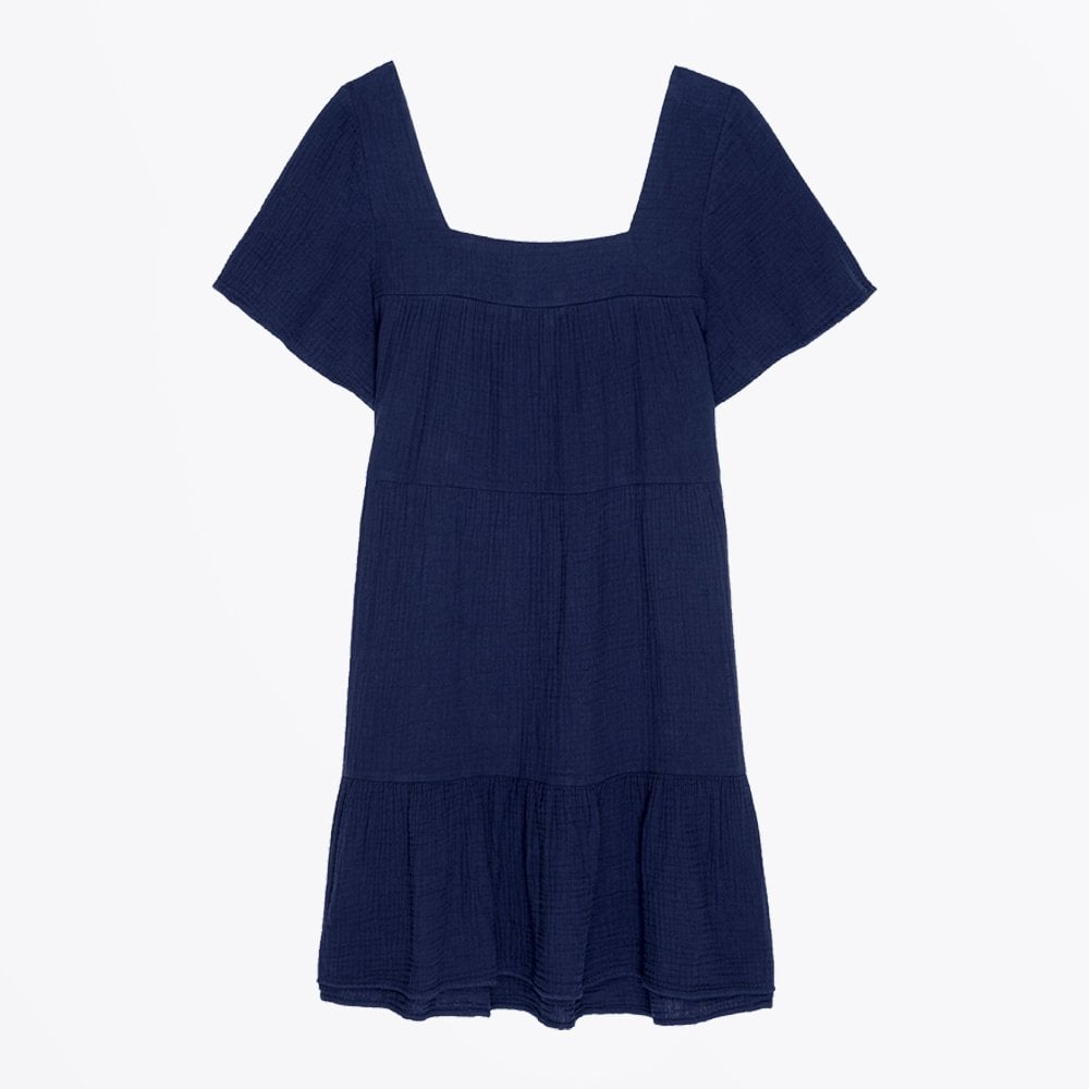 Relaxed and refined label, Rails is synonymous with accessible luxury by using premium fabrications in classic silhouettes, and has quickly evolved into a global lifestyle brand. This heavy double gauze cotton blue mini dress features a square-neckline and short flare sleeves. Features of this dress include relaxed fit, and flowy tiered skirt. This effortless, feminine dress make for easy wearability with a feminine touch.