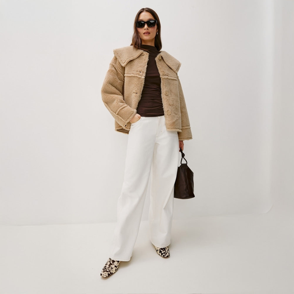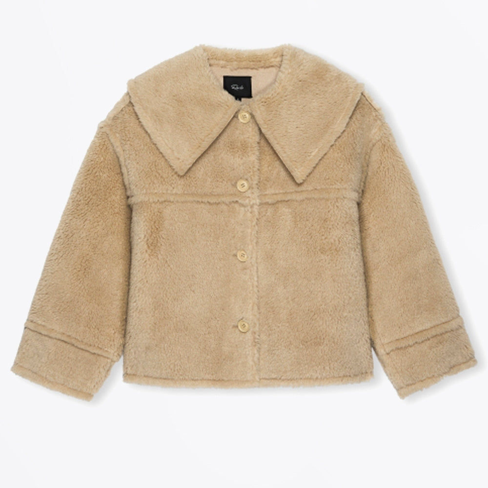 Relaxed and refined label, Rails is synonymous with accessible luxury by using premium fabrications in classic silhouettes and has quickly evolved into a global lifestyle brand. Add some luxury to your wardrobe with this effortless Wesson coat. The Rails Wesson Jacket in Bluffs offers a cozy and stylish layer for cooler days. Crafted from a plush faux shearling blend of 70% polyester and 30% wool, this jacket features a cropped, boxy silhouette with a wide shawl collar and button closures. The seaming details throughout add a touch of sophistication, making it a versatile addition to your wardrobe.