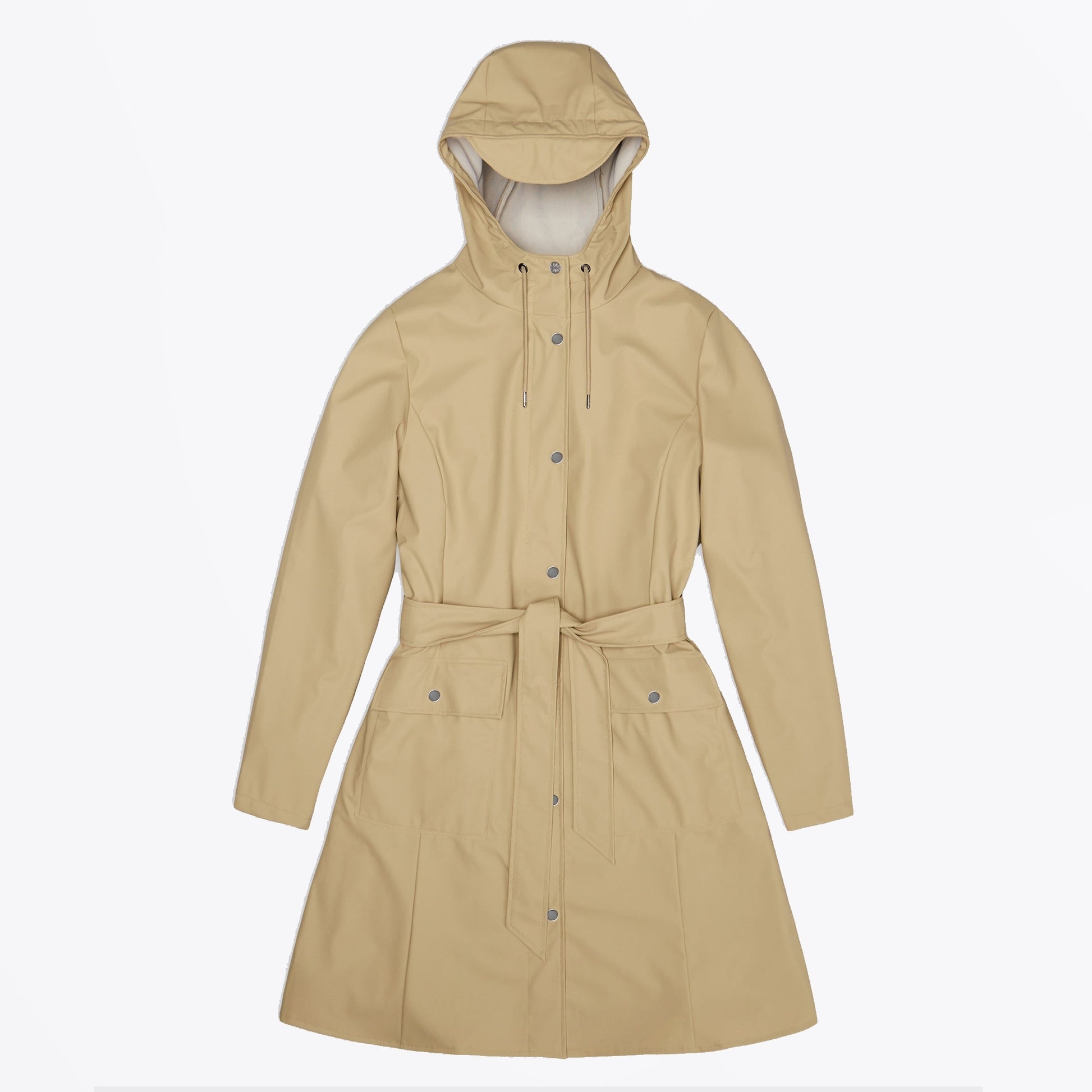 Rains is a lifestyle brand that highlights rainwear, adding contemporary style and fun design to practical outerwear. Perfect for both city life and your next outdoor adventure, Rains products are designed to be adaptable for any occasion. Protect your outfit from the elements with this stylish waterproof option from Rains. This Curve Jacket has a figure-flattering shape and an A-line fit, with a drawstring hood, a zip and popper futon fastening, and buttoned flap pockets. A polished way to extend your wardrobe, wear this jacket over any casual look for a waterproof element.