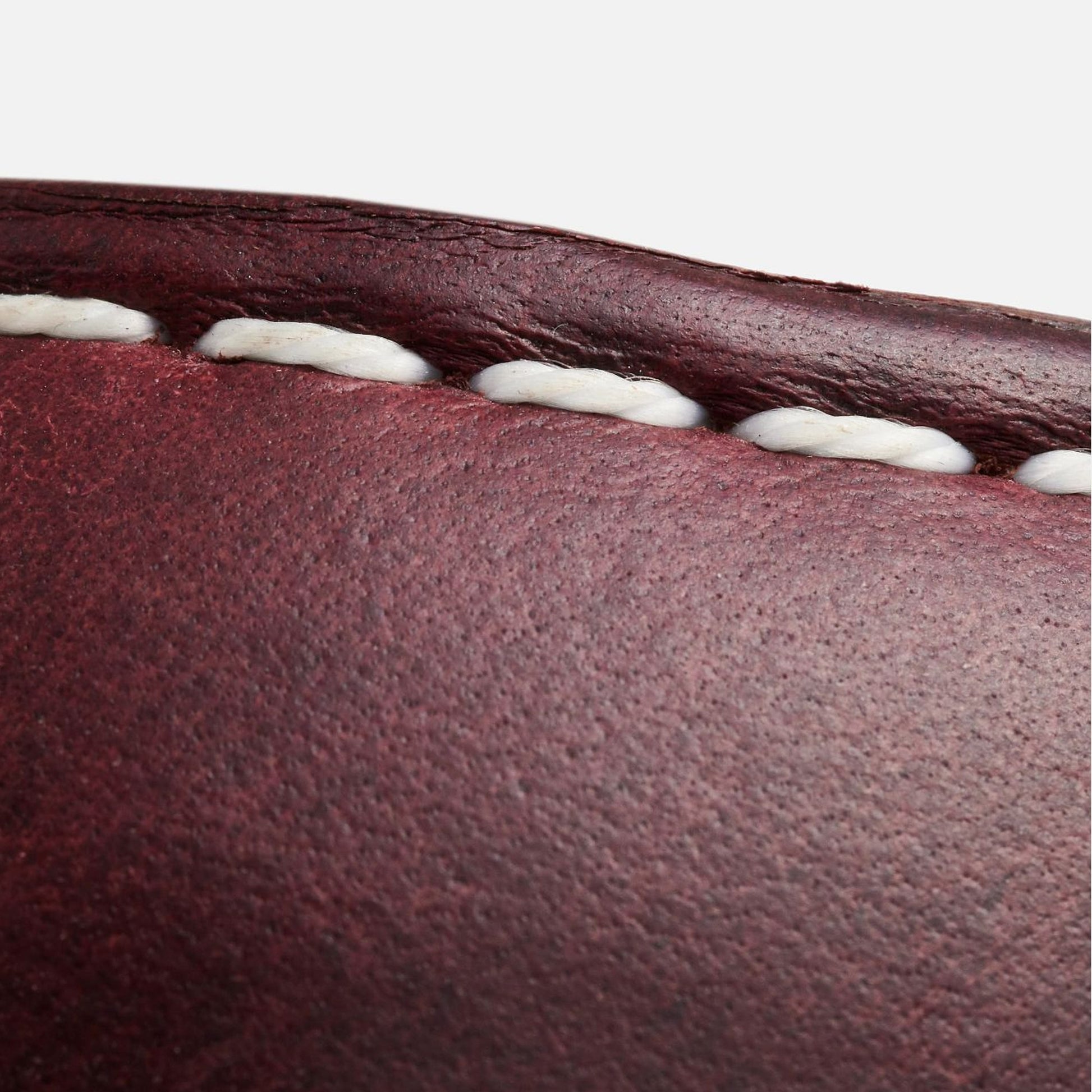 Born in from the commitment to high quality craftsmanship and American Heritage, Red Wing Shoes create hardwearing leather shoes and boots that have proven to be timeless. A family-owned business founded in 1905 Minnesota, Red Wing have had over a century to hone their craft, and the results are comfortable, high quality leather shoes crafted with pride and purpose. The classic Moc Toe Boot is one of the most sought-after styles from the brand, celebrated for its versatility and timelessness. Inspired by the moccasin, these boots are crafted in a black cherry shade, with contrasting yellow and red laces, a moccasin style toe, white topstitching, and cream soles. Wear these boots with a pair of Nudie Jeans and your favourite knitwear.