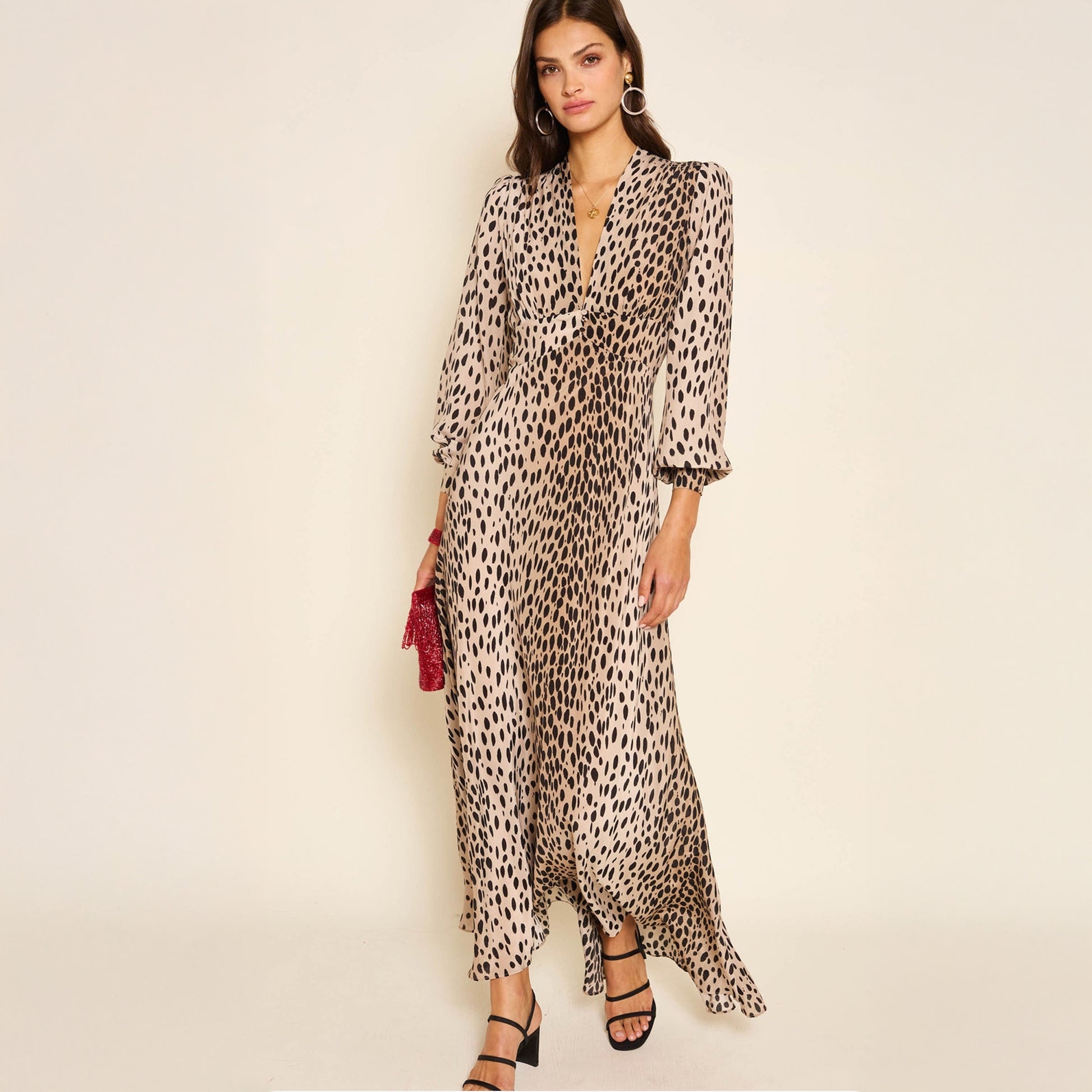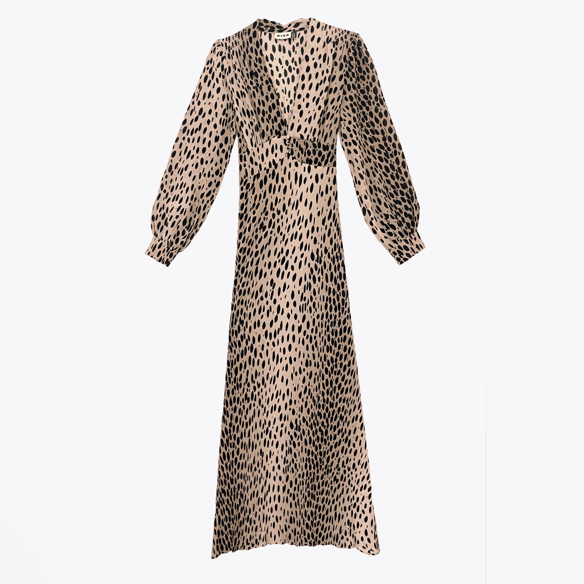 Rixo story began in 2015 at the living room of founders and best friends Henrietta and Orlagh. Their love of vintage style clothing inspired them to bring this vintage style to the modern day. Rixo focuses on hand painted prints using premium materials and vintage inspired silhouette, with the goal of making you feel your very best. This Emory dress has an updated Antelope Spot print and takes our bestselling leopard design and softens it with a muted palette, making it perfect for both day and night.