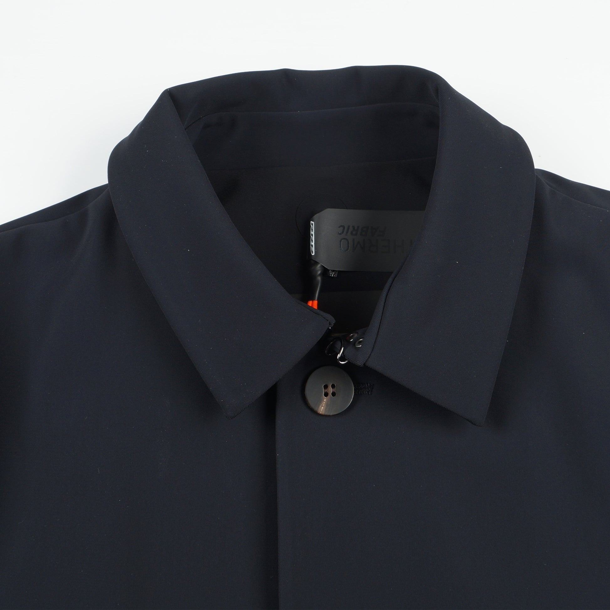 RRD (Roberto Ricci Designs) is a sporting goods and apparel company founded in 1989. The brand began producing windsurfing gear, and the collection expanded to include outerwear, knitwear, and accessories for men and women. Wonderfully practical and full of refined style, this navy-coloured coat features a collared neckline, chunky button-down fastening, a velvet effect lining, a waterproof and windproof material, side pockets, buttoned cuffs and a branded patch on the sleeve. The coat is finished with a internal soft material for warmth and comfort. Wear this jacket with a button-down Paul Smith shirt and some tapered pants for a refined look.