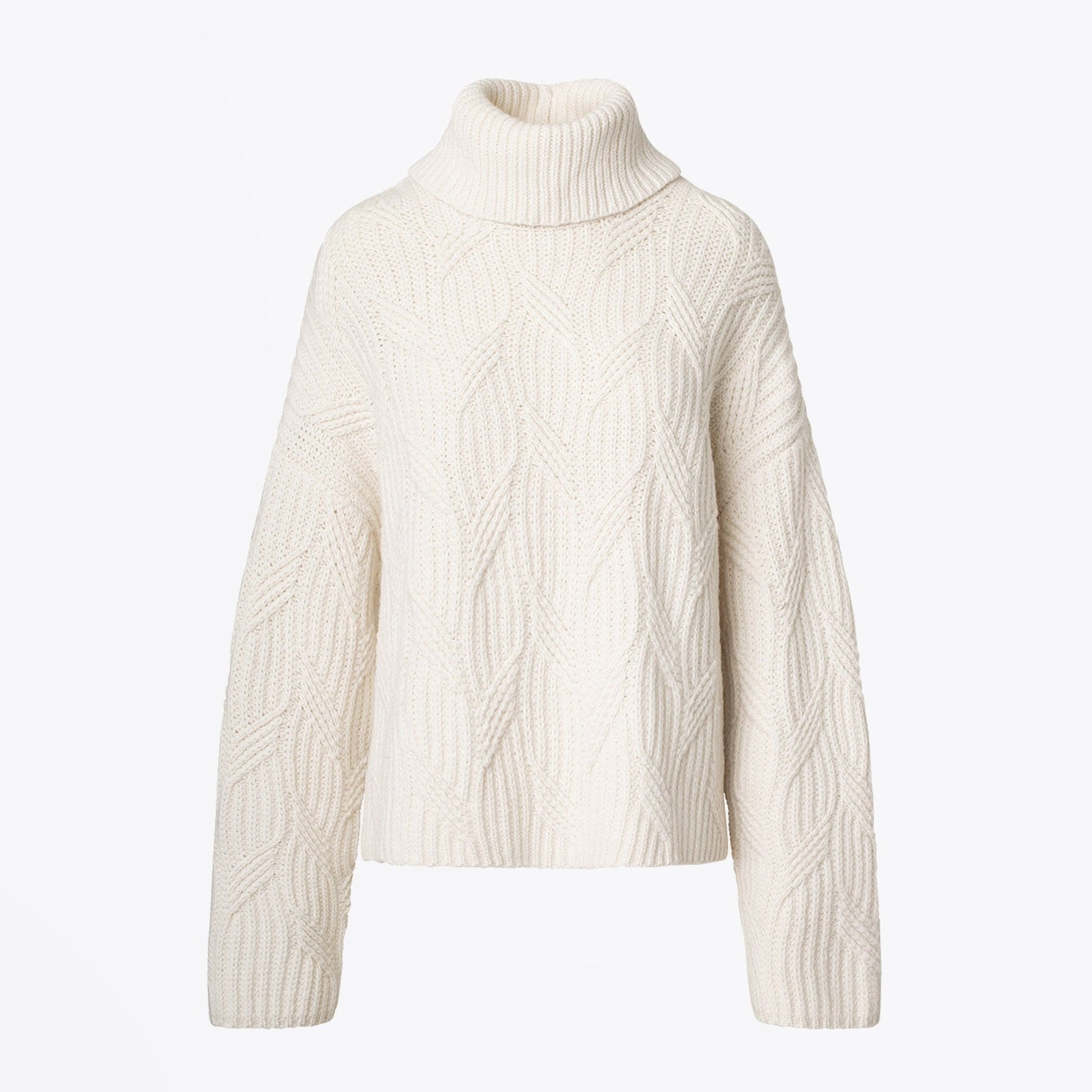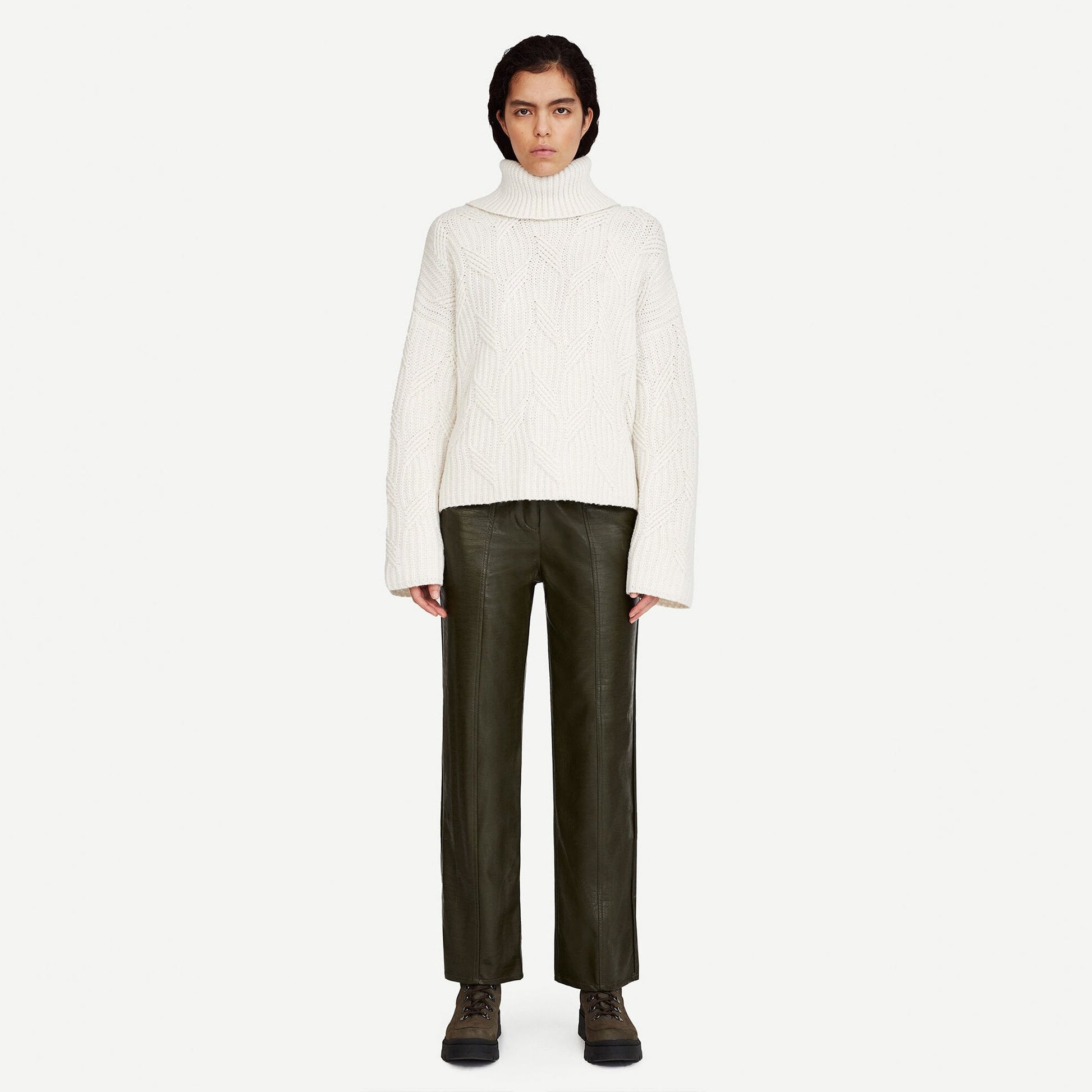 With a nod to its Scandinavian heritage, Sams��e Sams��e is defined by a wearable aesthetic that combines the utilitarian ease of Copenhagen street style with a quintessentially Scandinavian spirit. Collections transcend trends, drawing on Denmark’s renowned design tradition to result in minimalist, affordable and accessible fashion. This Samsoe & Samsoe chunky knit white pullover is crafted in a combination of wool blend yarn which creates a soft handle. This oversized fitting sweater with dropped shoulders has a loose and cosy fit and features a roll-neck collar with centre back slit and rib stitched structure with cable patterns. A versatile and stylish knitted sweater perfect for the A/W season.