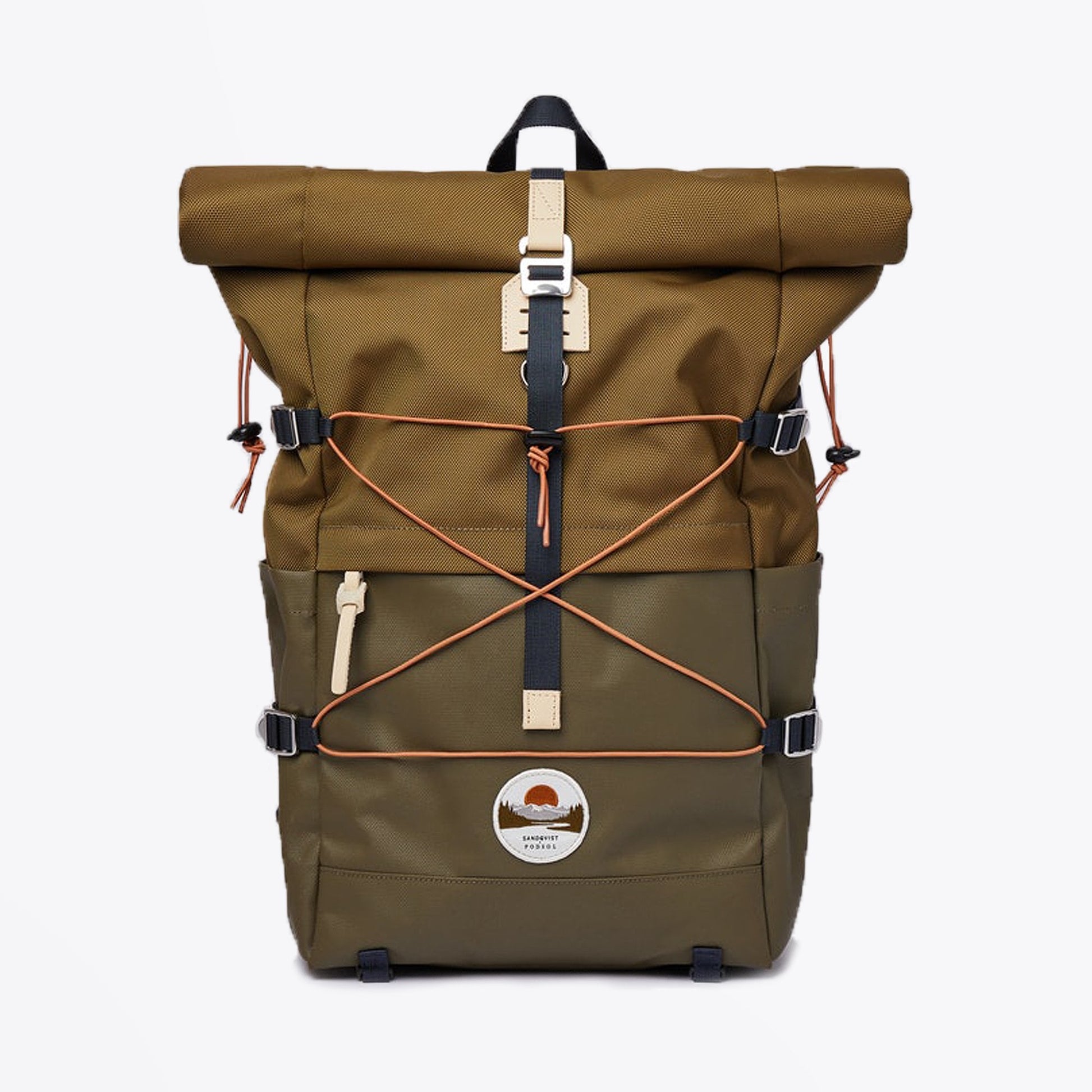 Our newest Scandinavian label, Sandqvist incorporates a cohesive range of bags and backpacks that encompasses all the necessities of modern life with a much loved design aesthetic. The brand places focus on challenging the role of functionality in design and practicing both sustainability and respect for the environment at all times, without compromising aesthetics. This rolltop backpack is made in collaboration with fly fishing collective Podsol. It is constructed with 100% recycled heavy-duty water-resistant polyester with leather patch accents and water resistant PU screen print coating on the bottom. Key features of this backpack include front D-ring for fishing net, rod tube holder on the side, leather holder for floatant and tippet spool, outer zipper pocket and inner mesh pocket. Added features include functional elastic cord detail, compression straps, padded and adjustable shoulder straps and side bottle slip pockets.