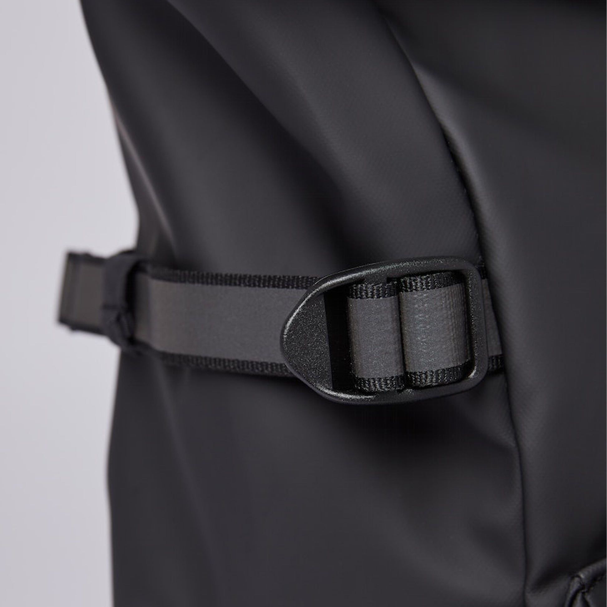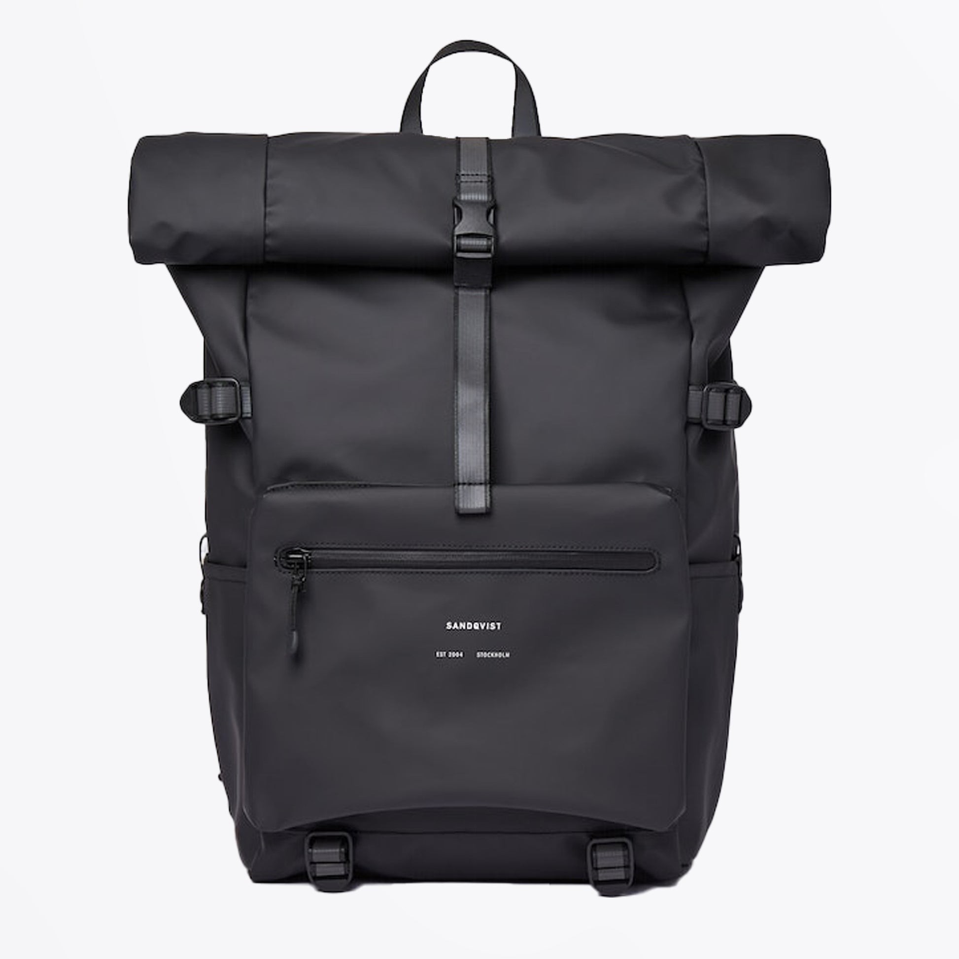 Sandqvist is a Scandinavian brand committed to creating bags that last. They are dedicated to crafting their products responsibly and with the planet in mind. Sandqvist bags are designed with both form and function in mind, without compromise to either, making their collection incomparable to others. This backpack is beautiful in its craftsmanship and its usage. Crafted in a black waterproof material, this backpack features a roll down design with a single buckle fastening that is adjustable, a front zipped pocket, popper button fastened side pockets, and a top zipped fastening. Use this bag as an use an everyday bag, or as a weekend option.
