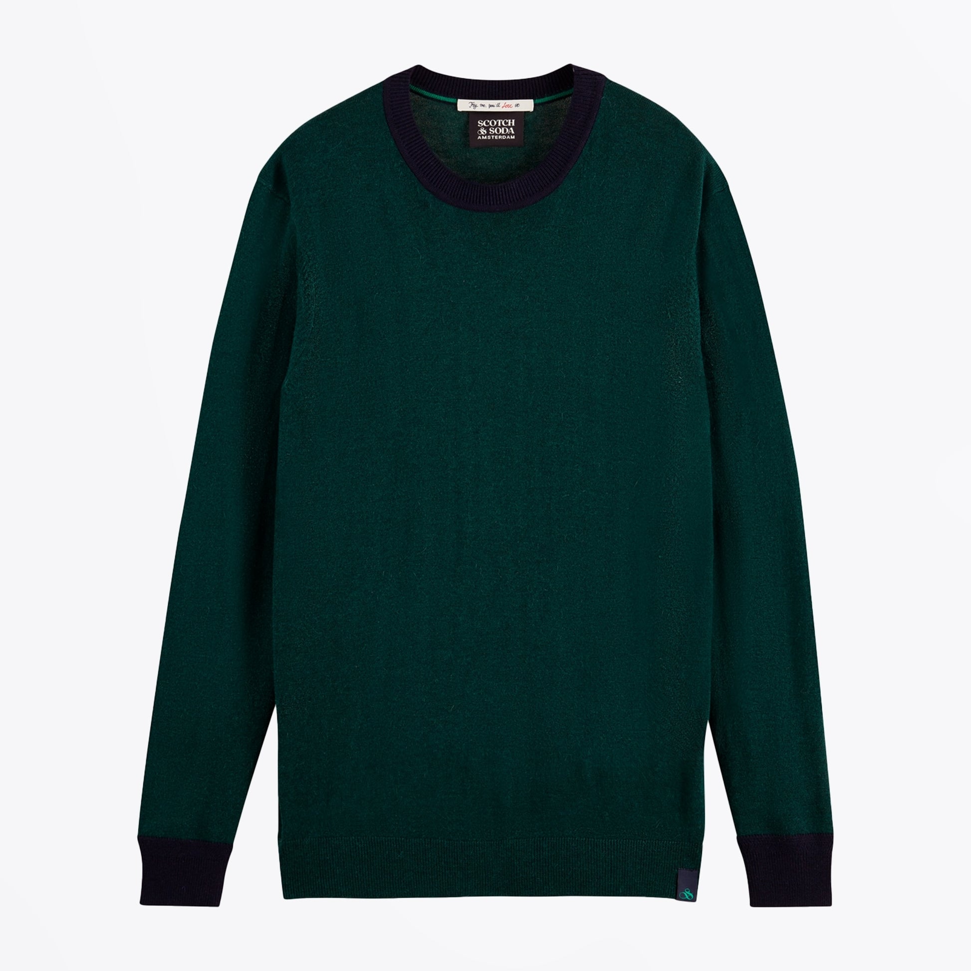 Scotch and Soda is a casual couture menswear brand designed in Amsterdam that is a firm favourite among our stylish customers. This high-end brand merges contemporary and timeless elements creating a look that is above the rest. Great colour and designer quality for the new season, this Scotch & Soda jumper is crafted in a forest green shade, with a navy ribbed neckline and navy cuffs. Wear this jumper with a pair of 7 for All Mankind jeans and some Paul Smith trainers.