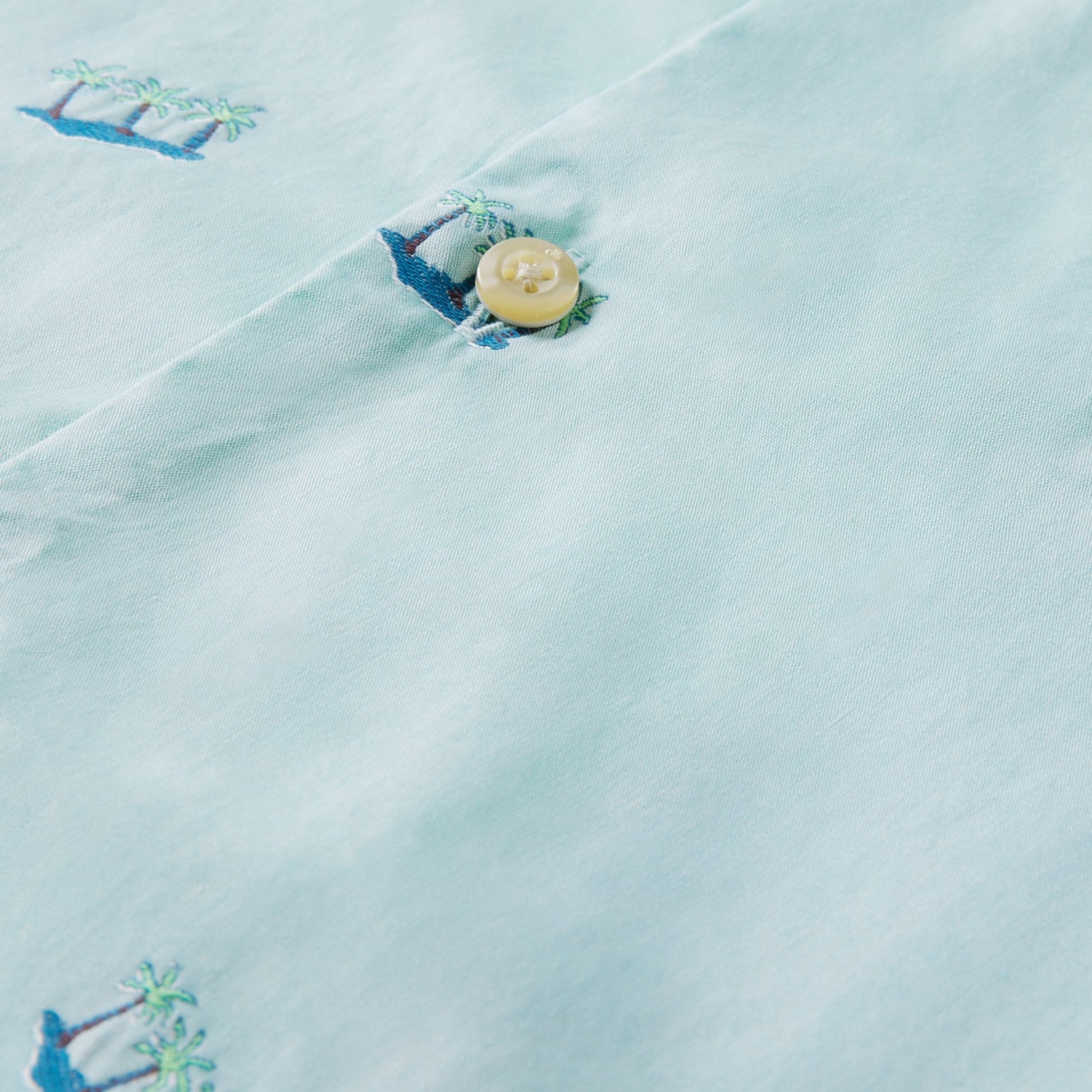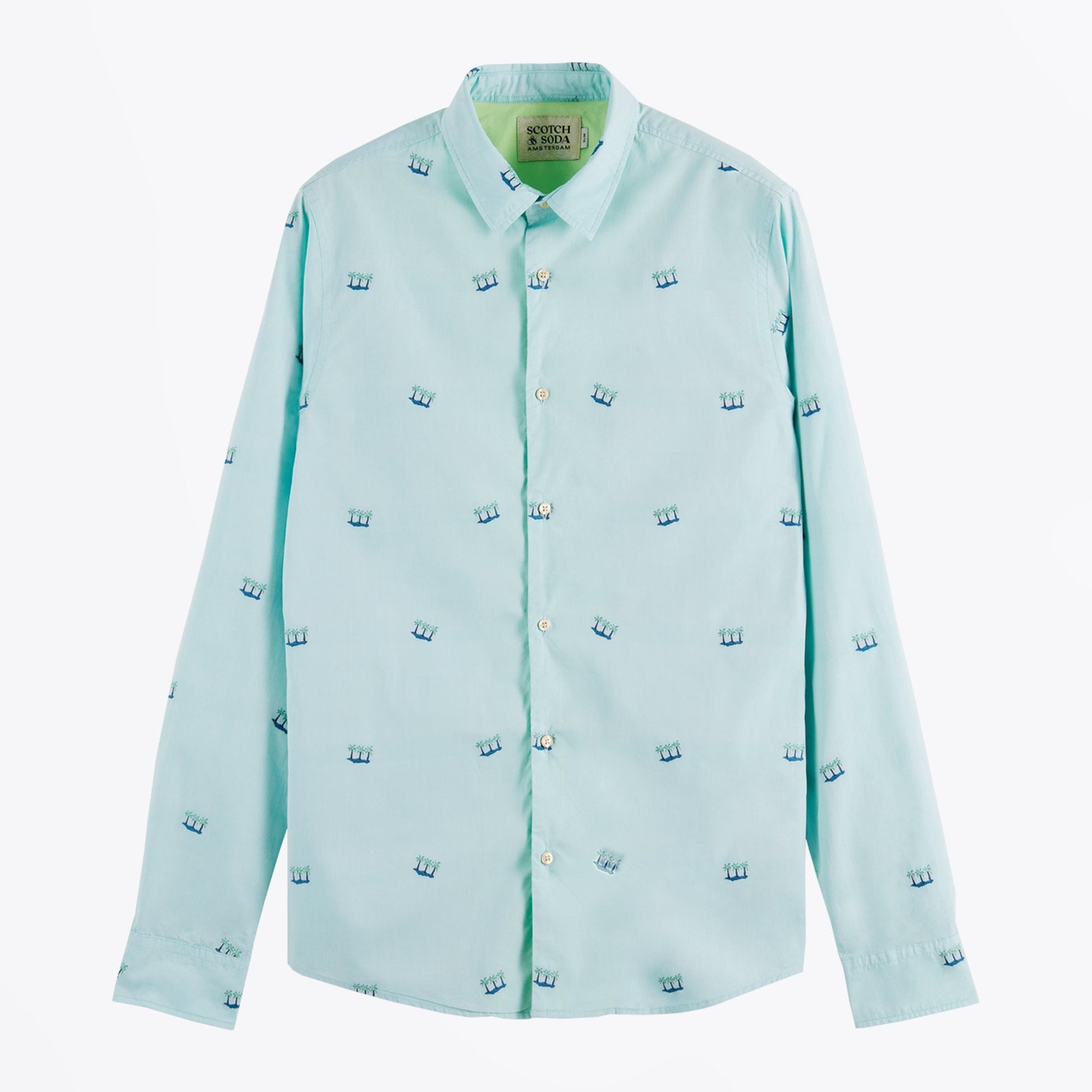 - Slim Fit Embroidered Palm Shirt - Light Blue