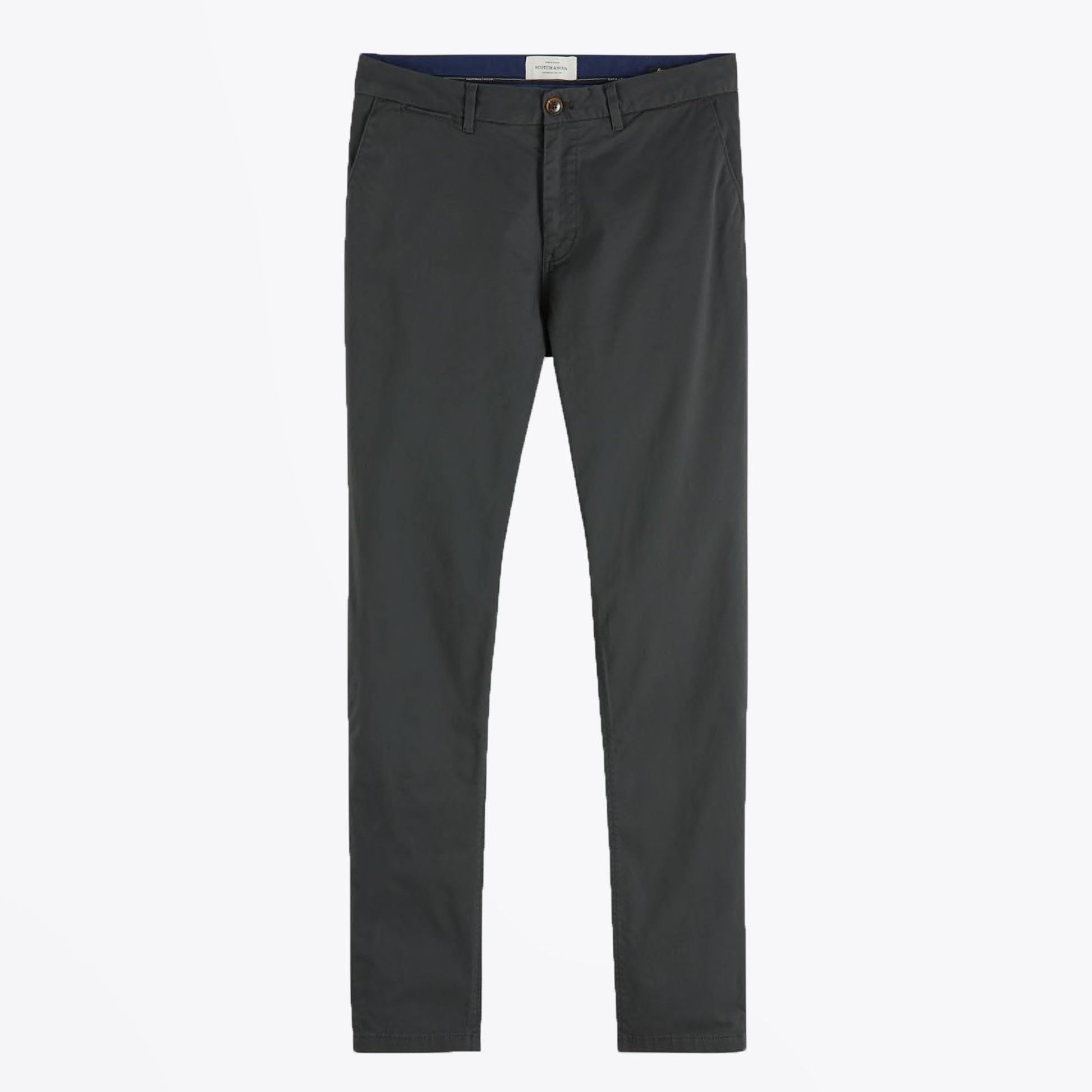 Scotch and Soda is a casual couture menswear brand designed in Amsterdam, known for their distinctive yet classic styling. The Stuart is our regular slim fit chino. This pair of charcoal coloured slim fit chinos are crafted in a stretch cotton and have a luxurious soft handle. They come complete with two side pockets, two back pockets and a zip and button fly. The relaxed style of these trousers gives these chinos a distinctive and modern feel while also injecting comfort and transitioning your look from day into night.