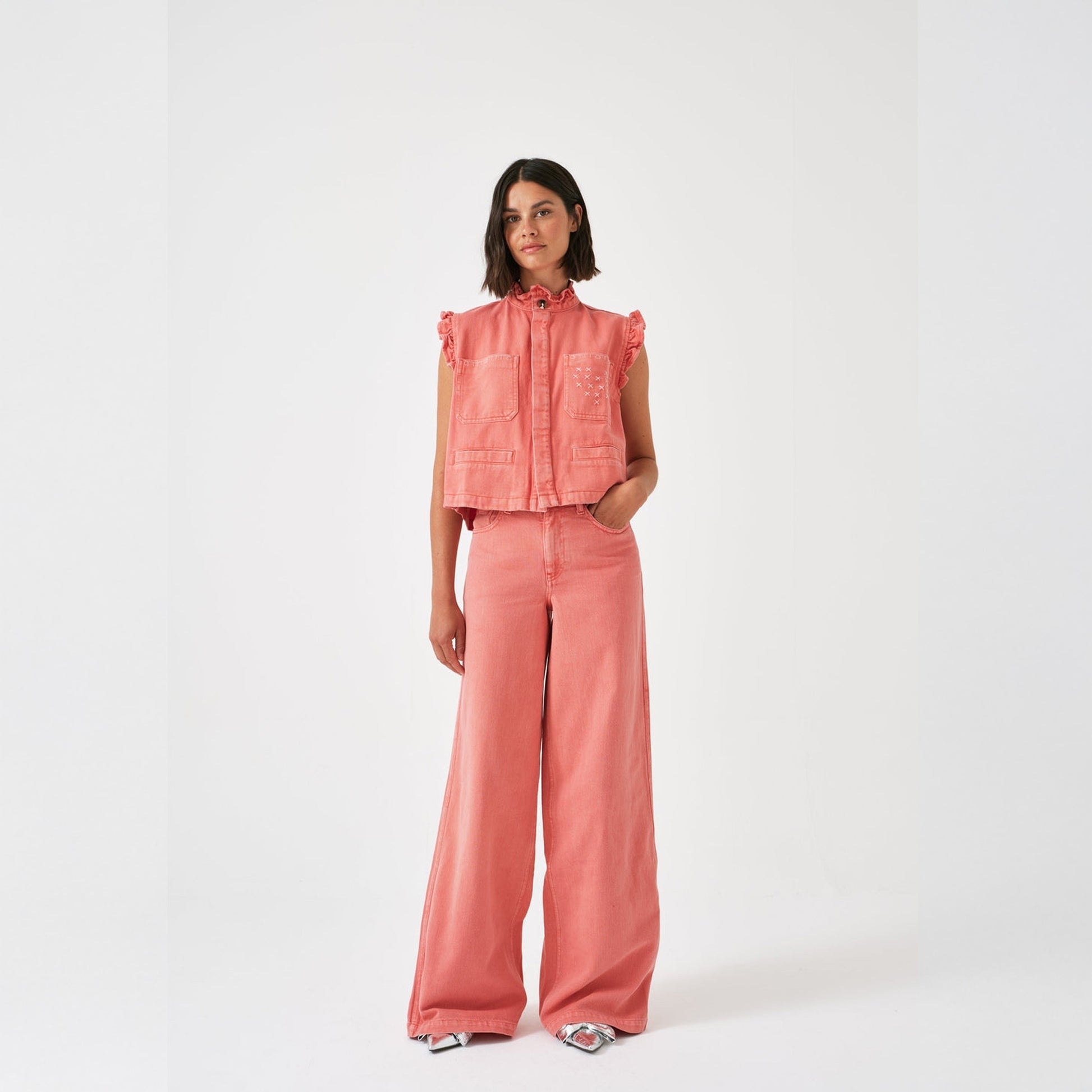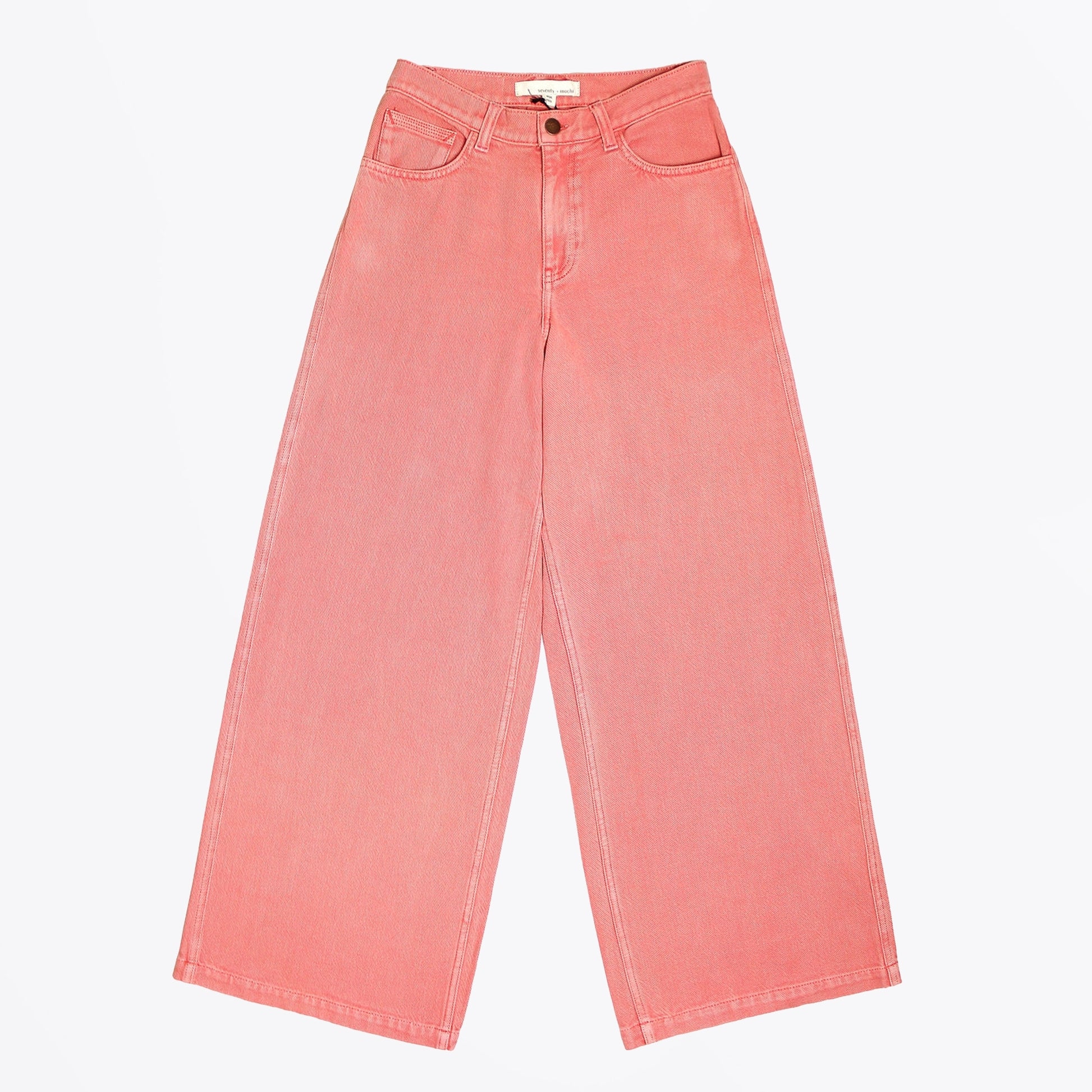 Introducing to our Mrs Stitch SS 25 collection Seventy & Mochi. The brand is female led created in 2020 and specialises in luxury denim items. The brand is a tribute to traditional craftsmanship and working women and is dedicated to uplifting marginalized communities by providing unbiased, equal employment and collaborating with female entrepreneurs. Add some luxury denim to your wardrobe with this option from Seventy & Mochi. These super summery red dear bay jean features two side pockets, one coin pocket, button and zip fastening, two rear pockets and a logo patch. Wear these jeans with a cool tee and a pair of Hoff sneakers.