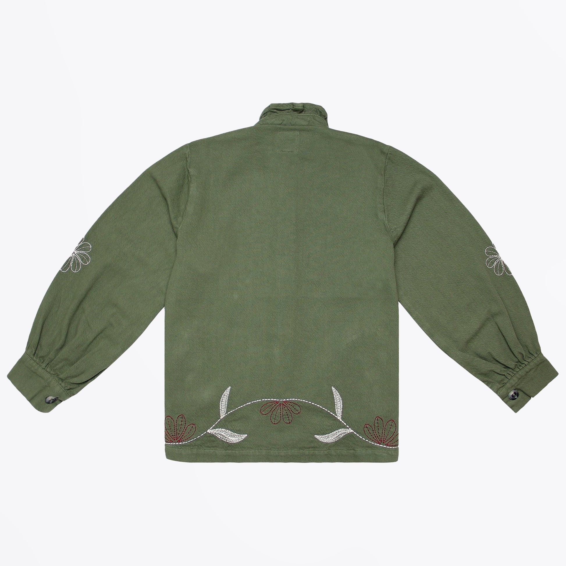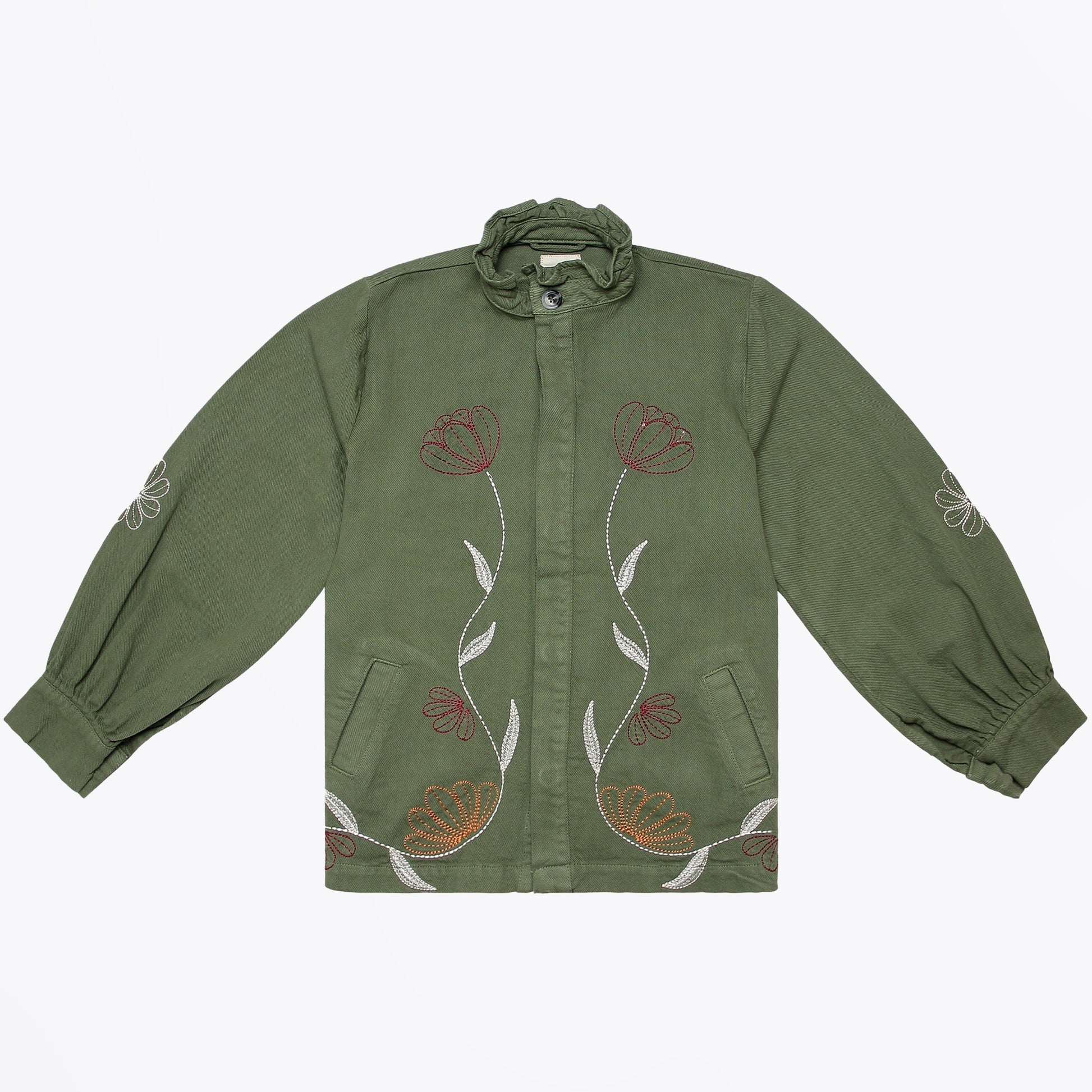 Introducing to our Mrs Stitch AW 24 collection Seventy & Mochi. The brand is female led created in 2020 and specialises in luxury denim items. The brand is a tribute to traditional craftsmanship and working women and is dedicated to uplifting marginalized communities by providing unbiased, equal employment and collaborating with female entrepreneurs. Add some luxury denim to your wardrobe with this option from Seventy & Mochi. This Pablo jacket features an embroidered floral design, frill collar, soft ballon shaping sleeve, hidden button fastening, two side pockets and straight hem. Wear this jacket with some Paige jeans and a pair of Hoff sneakers