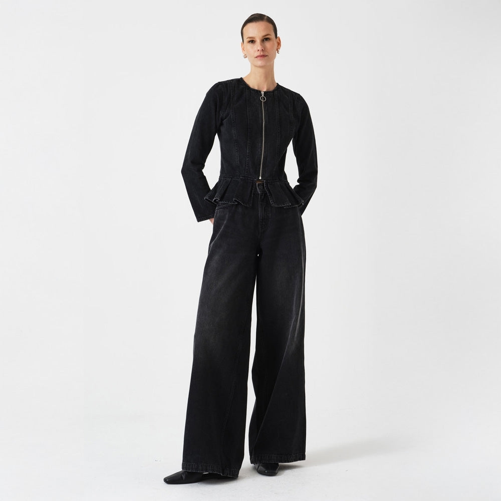 Introducing a new brand to our Mrs Stitch collection Sventy & Mochi. The brand is female led created in 2020 and specialises in luxury denim items. The brand is a tribute to traditional craftsmanship and working women. The brand is dedicated to uplifting marginalized communities by providing unbiased, equal employment and collaborating with female entrepreneurs. Add some luxury denim to your wardrobe with this option from Seventy & Mochi. This Zoe jacket features a corset style fitted design, peplum, collarless, zip front with a very feminine feel. Wear this Zoe jacket with the Bay jeans and a pair of Victoria sneakers.