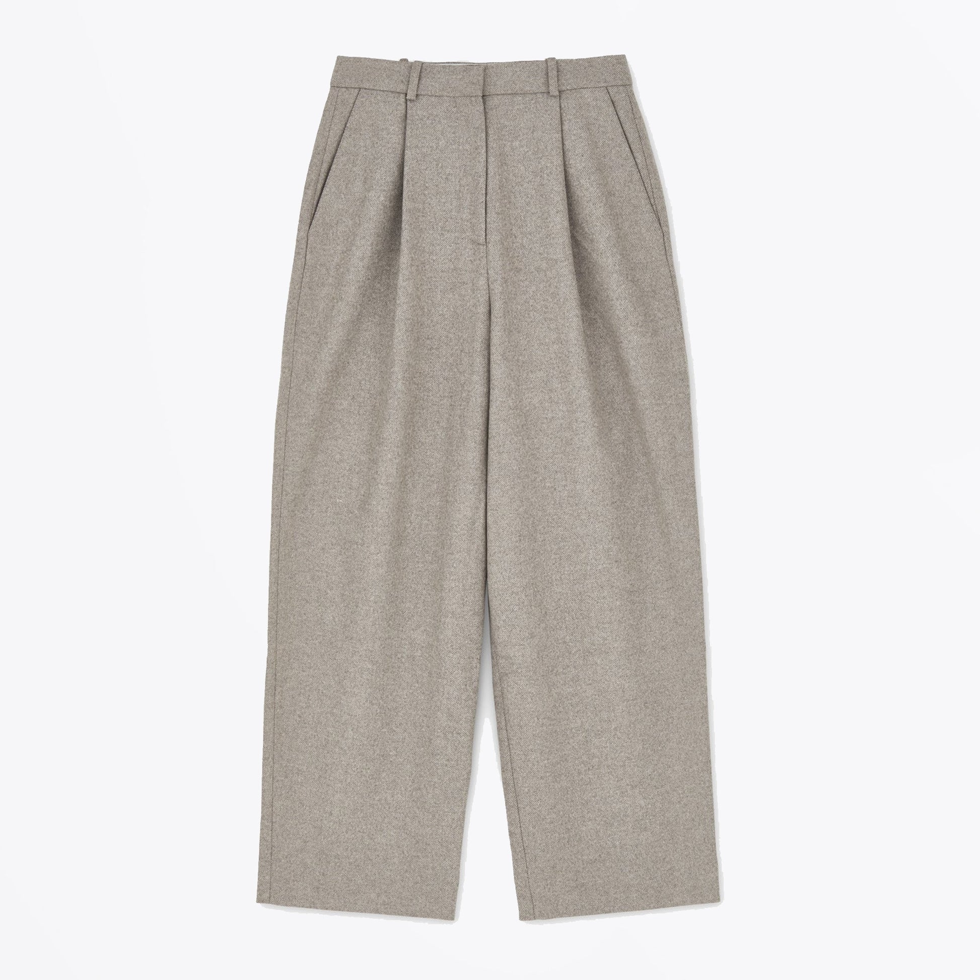 The Skall story started in the coastal area of Northern Jutland where Julie and Marie’s great-grandfather and his brothers collected seashells and sold them for chicken feed to earn a living. This is also how the family got its last name Skall, meaning seashell in Danish. Today the seashells are still a source of inspiration. The seashells remind them that nature, animals and humans are closely connected – and of their ancestors’ simple way of living. That less is enough. Values that the sisters wish to pass on to everyone buying a Skall piece. Update your wardrobe staples with this option from Skall Studio. These Bob cropped trousers are crafted in a recycled wool for a casual look. These trousers feature a medium-high waist, pleats in the front , side pockets and they offer a versatile wearability for a cool relaxed look this AW.