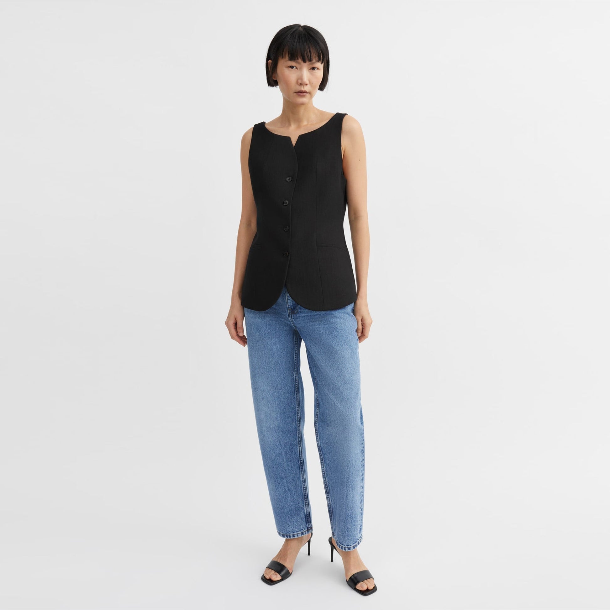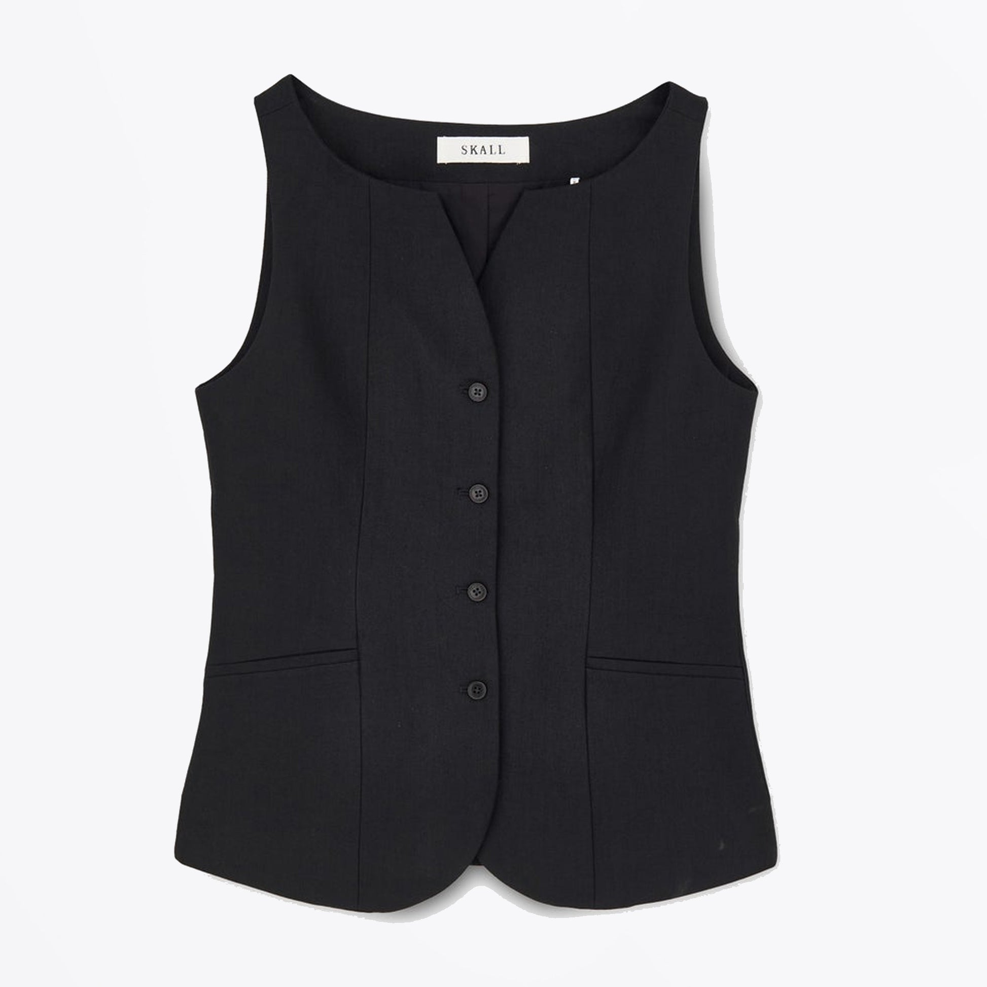 The Skall story started in the coastal area of Northern Jutland where Julie and Marie’s great-grandfather and his brothers collected seashells and sold them for chicken feed to earn a living. This is also how the family got its last name Skall, meaning seashell in Danish. Today the seashells are still a source of inspiration. The seashells remind them that nature, animals and humans are closely connected – and of their ancestors’ simple way of living. That less is enough. Values that the sisters wish to pass on to everyone buying a Skall piece. Update your wardrobe staples with this option from Skall Studio. This Toni waistcoat has a sleek design with a decorative neckline. It is crafted in a linen cotton mix for an elevated look. This Toni waistcoat is fully lined with tailored seams front and back with button front and corozo buttons made from nutshells. This little waistcoat is the perfect chic piece to add to a cool elevated look this SS.
