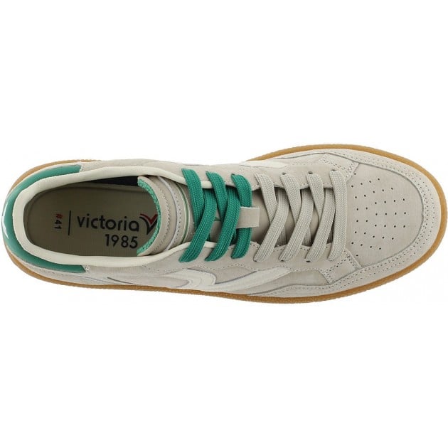Elevate your casual rotation with these Victoria Smash suede sneaker in sophisticated gris. Crafted from premium grey suede uppers, it features a classic gum sole that grounds the design with warmth and texture. The striking green trim on the back heel adds a contemporary edge, making this a versatile piece that transitions effortlessly from everyday wear to styled occasions. A refined choice for those seeking understated luxury in their footwear collection.