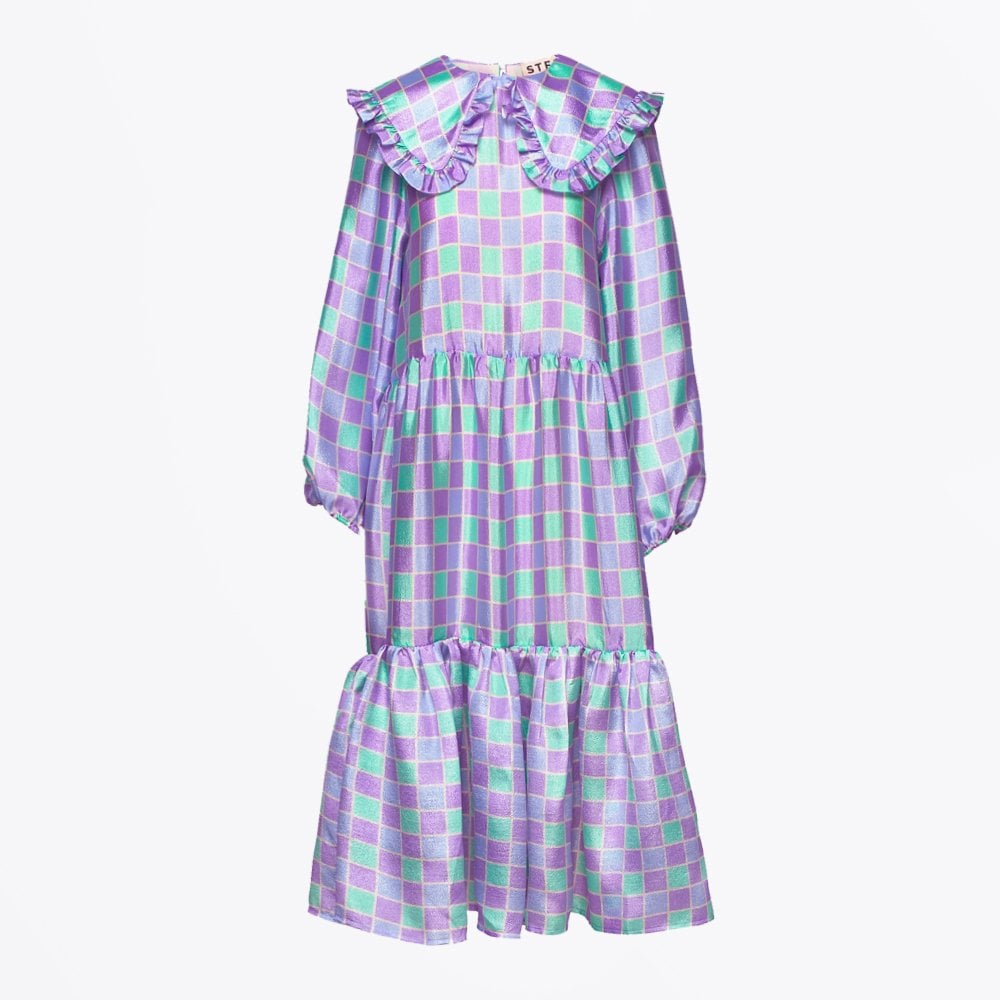 - Stefania Checked Midi Dress - Purple