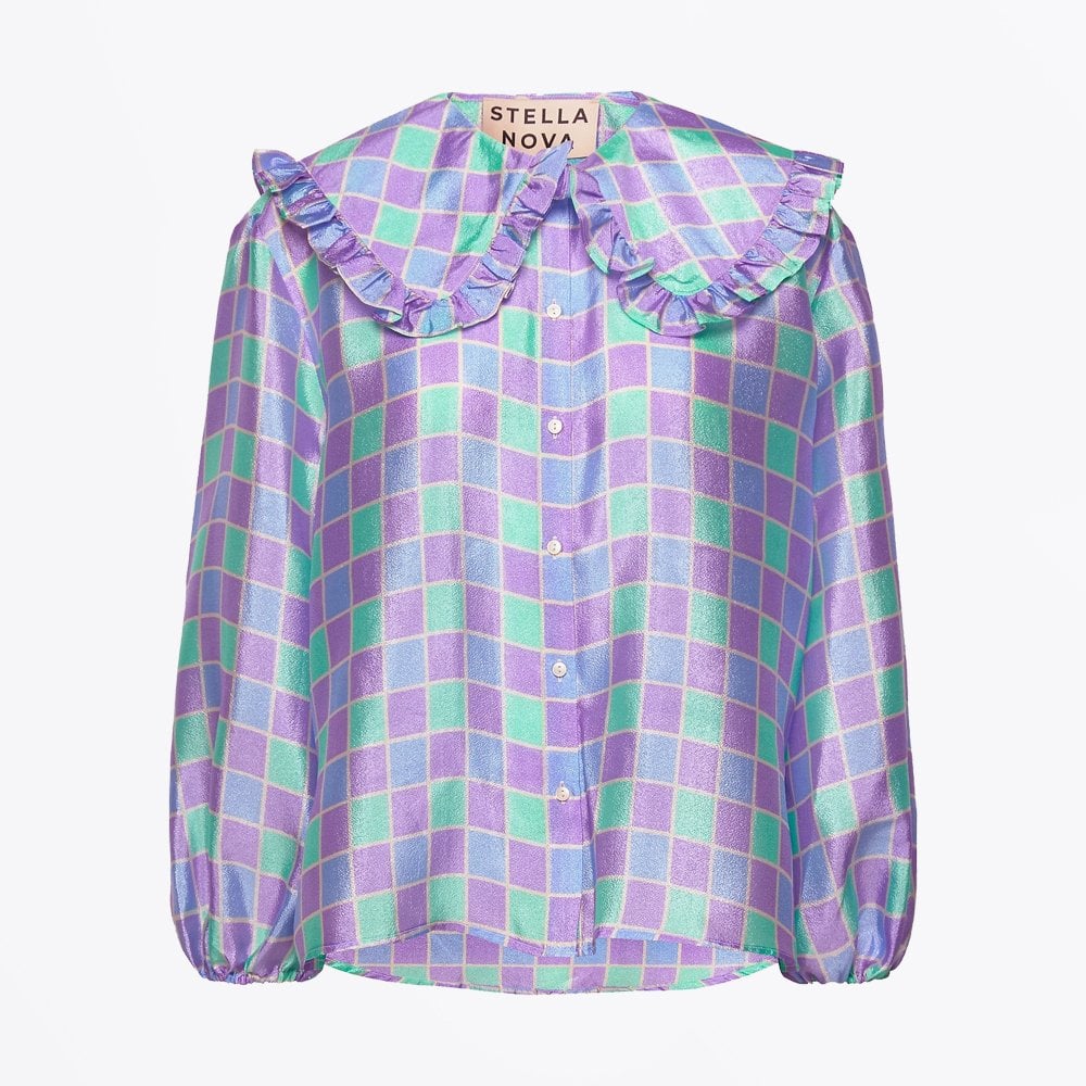 Introducing one of our newest labels, Stella Nova to Mr & Mrs Stitch. Founded in 2002 by designer and creative director Trine Skoller, Stella Nova's focal point is the creation of the perfect must-have wardrobe where every style consist of little treasures, that each tell their own story. The playful universe of Stella Nova creates unique styles that women will want in their wardrobe now and forever. This stunning checked blouse is crafted in a lightweight fabric in a voluminous relaxed fit. This top features an oversized collar, long sleeves with elasticated cuffs and button-down front. The back of this blouse falls lower to the front.
