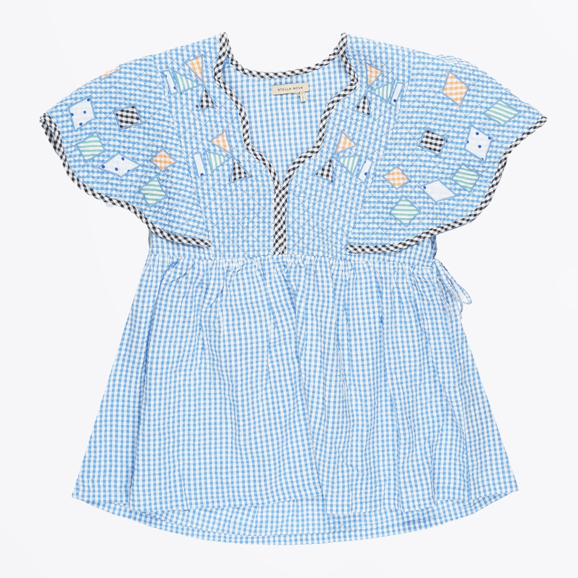 Founded in 2002 by designer and creative director Trine Skoller, Stella Nova's focal point is the creation of the perfect must-have wardrobe where every style consists of little treasures, that each tell their own story. The playful universe of Stella Nova creates unique styles that women will want in their wardrobe now and forever. Add a touch of creativity to your wardrobe with this Tina top. This top feature a V – shaped neckline, with a geometrical design on the chest and shoulders, finished with a blue check design. Wear this top with a pair of Veja shoes and your favourite designer shorts.