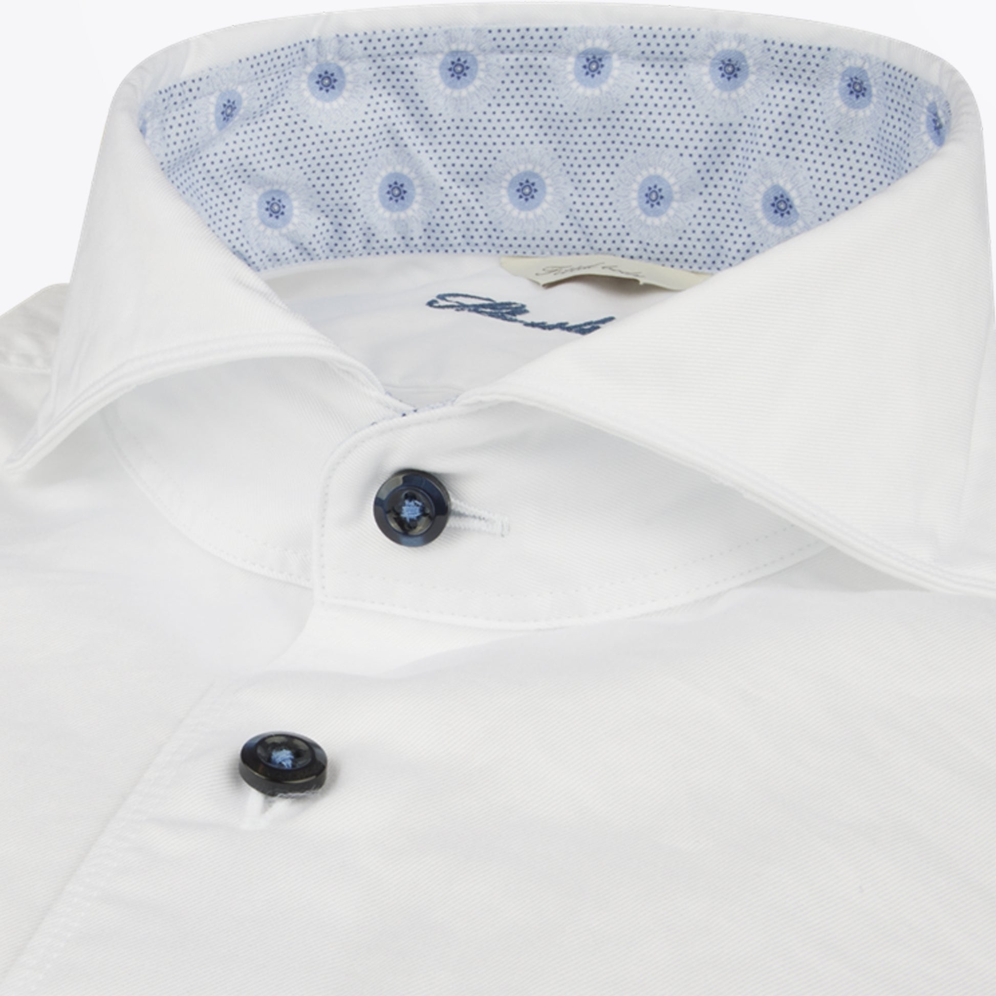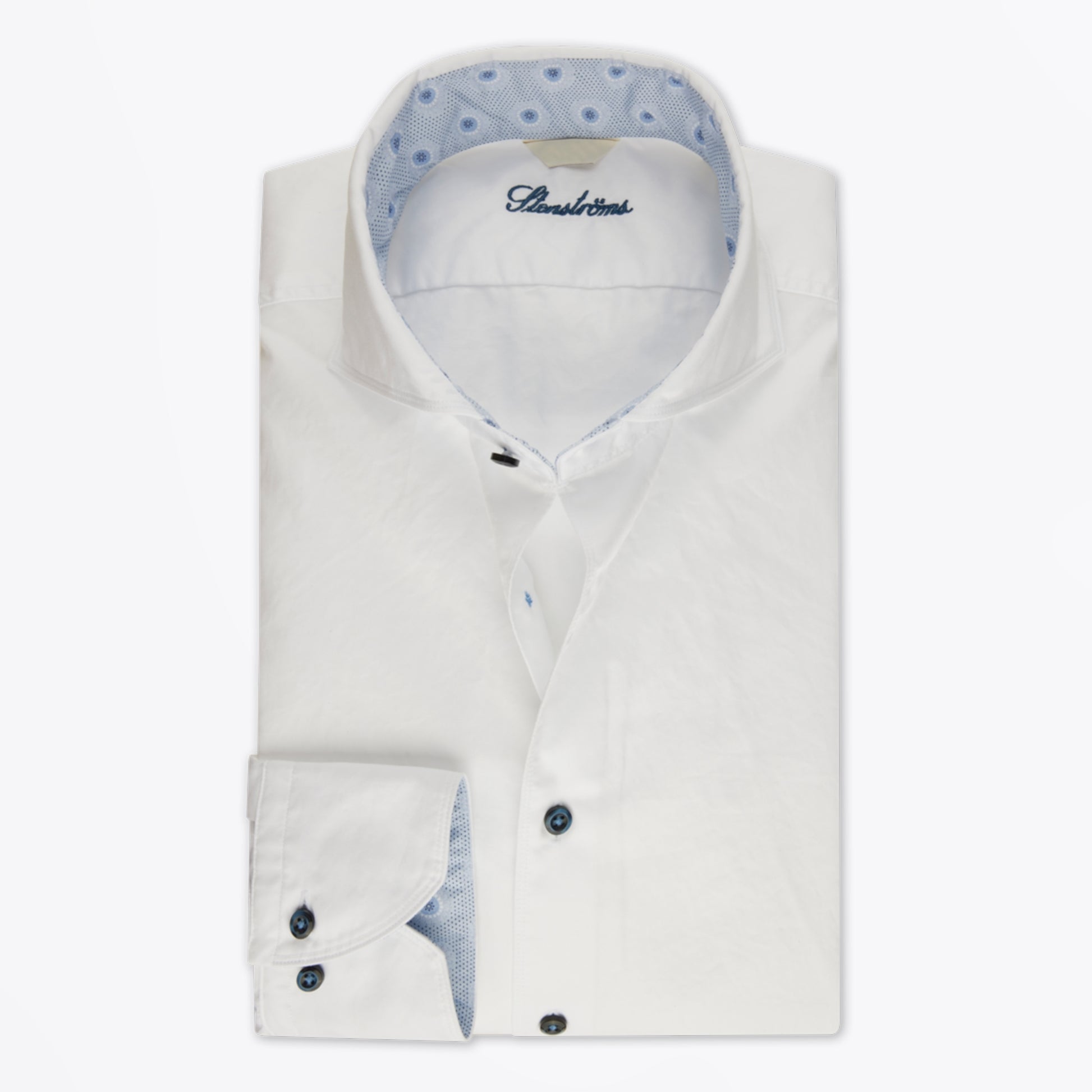 Luxury menswear designer Stenstroms specialise in producing signature professional and casual apparel for the style-savvy gent. Update your summer shirt options with this Stenstroms option. Crafted in a cotton material, this light white shirt has a collared neckline with a print design, a mother of pearl button up fastening, and buttoned cuffs. Wear this shirt with a pair of MMX trousers for a styled-up summer look.