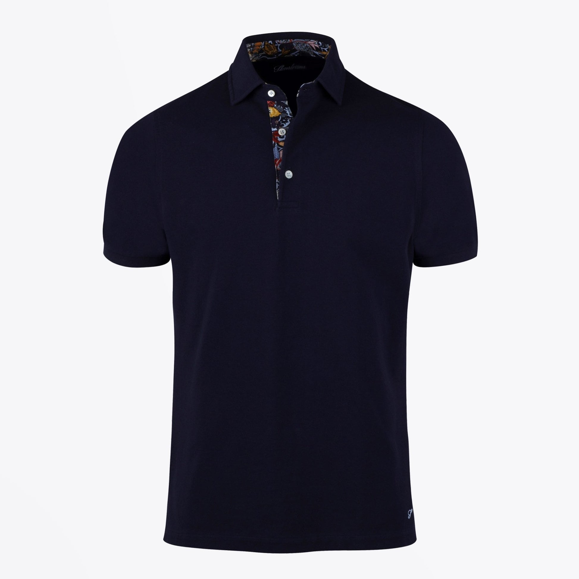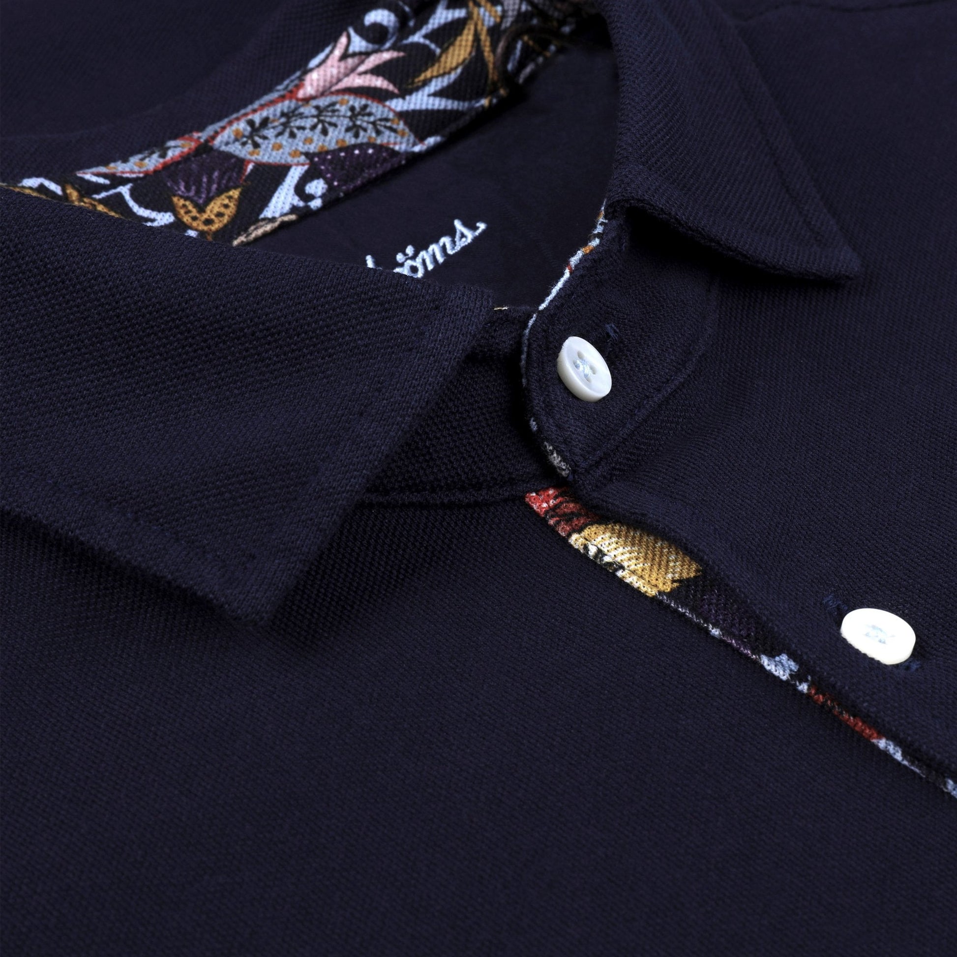 Introducing our new collection of polo shirts to Mr and Mrs Stitch, expertly crafted using premium cotton. Luxury menswear designer Stenstroms specialise in producing signature professional and casual apparel for the style-savvy gent. This polo shirt in navy is crafted from a superior cotton pique making it breathable and comfortable to wear. The top is detailed with a floral printed contrasting fabric inside collar. Added features of this stunning polo include three mother of pearl buttons. Team this polo shirt with beige chinos or shorts to complete your look.