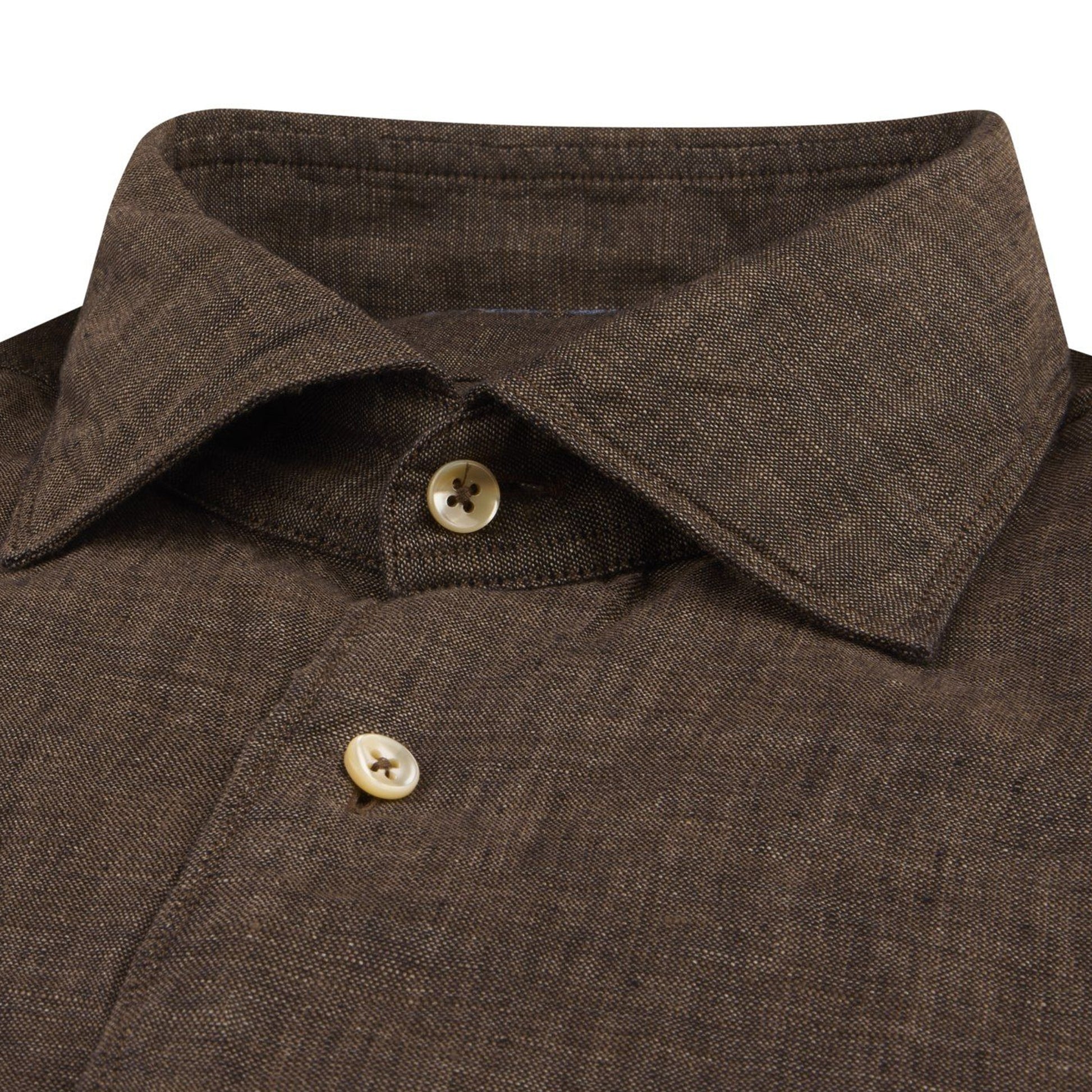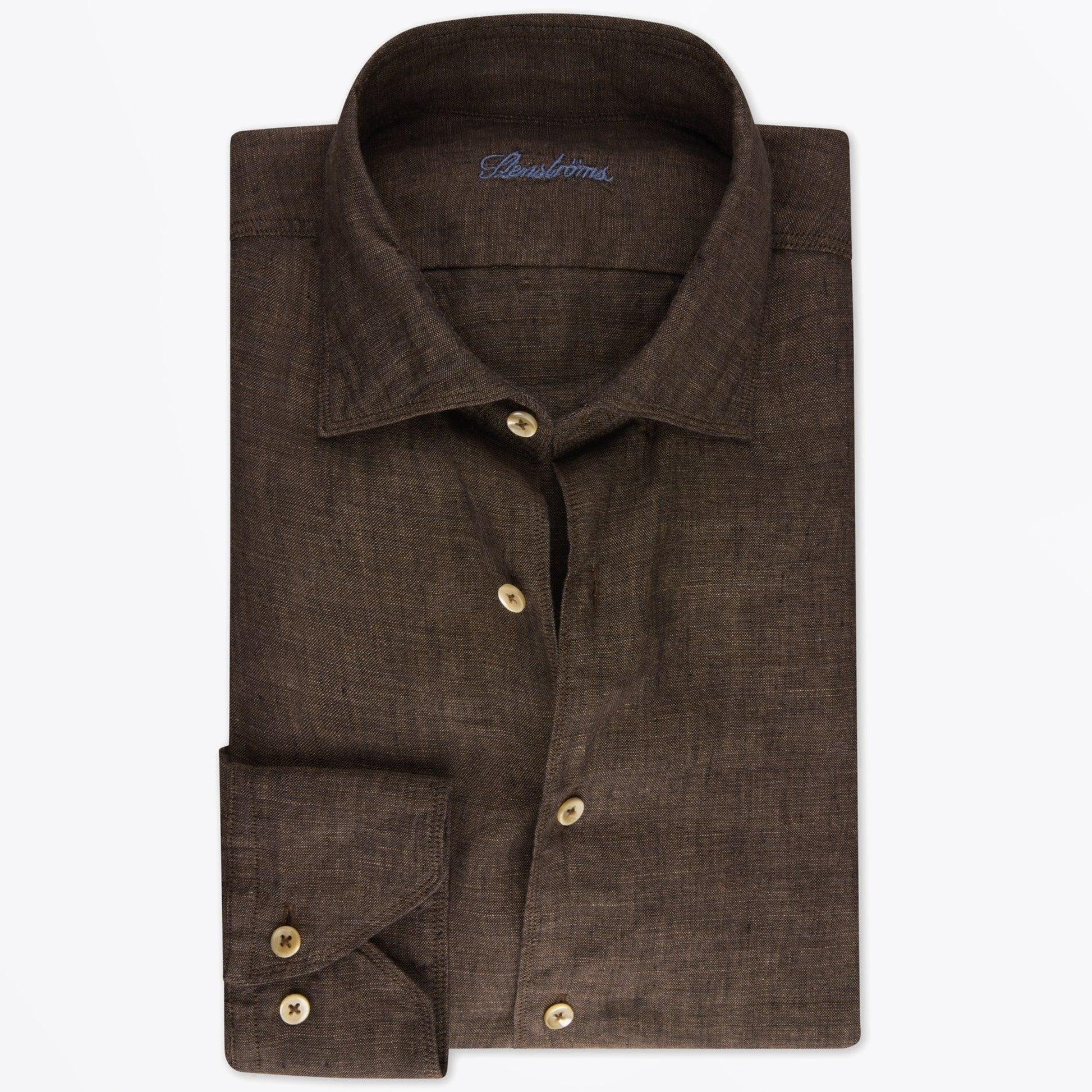 Luxury menswear designer Stenstroms specialise in producing signature professional and casual apparel for the style-savvy gent. Update your summer shirt options with this Stenstroms option. Crafted in a linen material, this dark brown shirt features a collared neckline, a mother of pearl button up fastening, and buttoned cuffs. Wear this shirt with a pair of MMX trousers for a styled-up summer look.