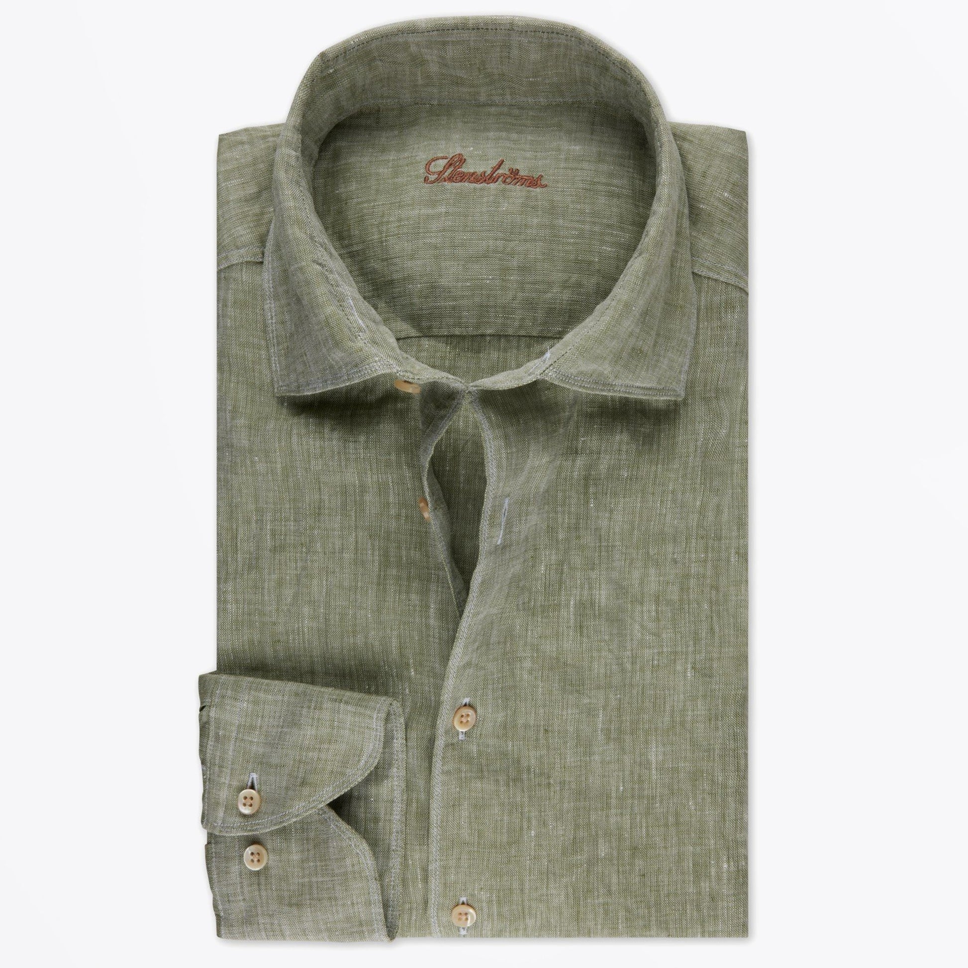 - Fitted Body Linen Shirt - Green