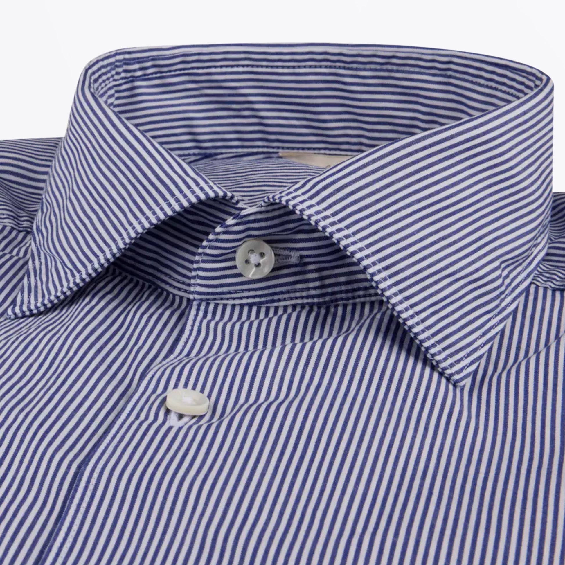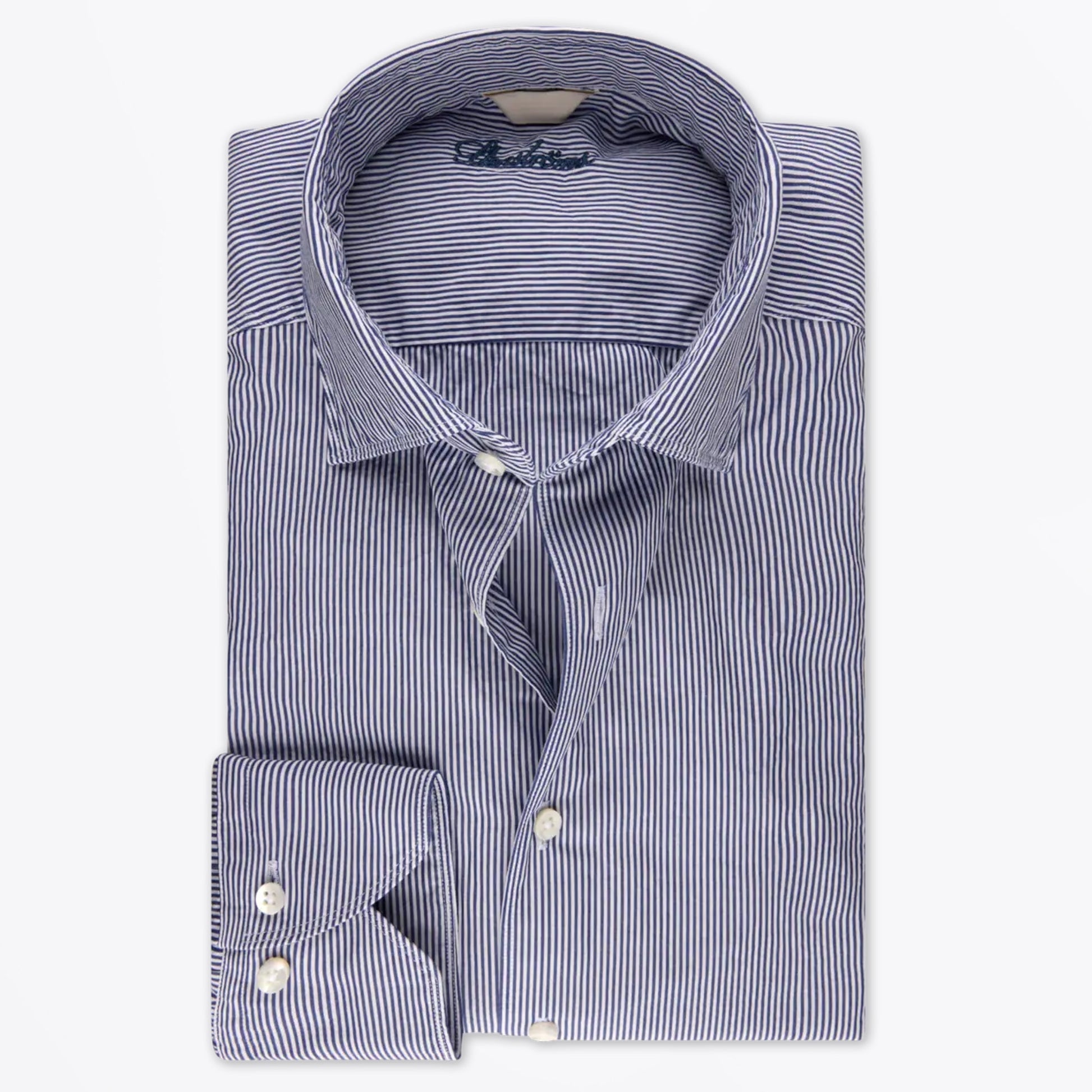 Luxury menswear designer Stenstroms specialise in producing signature professional and casual apparel for the style-savvy gent. Update your summer shirt options with this Stenstroms option. Crafted in a cotton twofold material, this navy striped shirt features a collared neckline, a mother of pearl button up fastening, and buttoned cuffs. Wear this shirt with a pair of MMX trousers for a styled-up summer look.