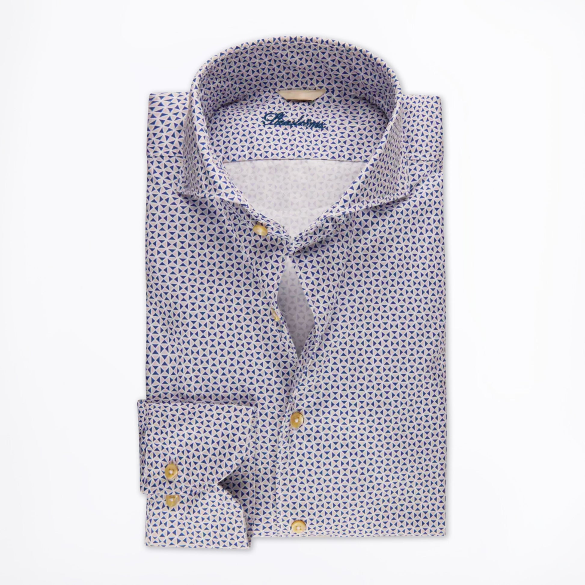 Luxury menswear designer Stenstroms specialise in producing signature professional and casual apparel for the style-savvy gent. Update your summer shirt options with this Stenstroms option. Crafted in a cotton twofold material, this blue pattern shirt features a  collared neckline, a mother of pearl button up fastening, and buttoned cuffs. Wear this shirt with a pair of MMX trousers for a styled-up summer look.