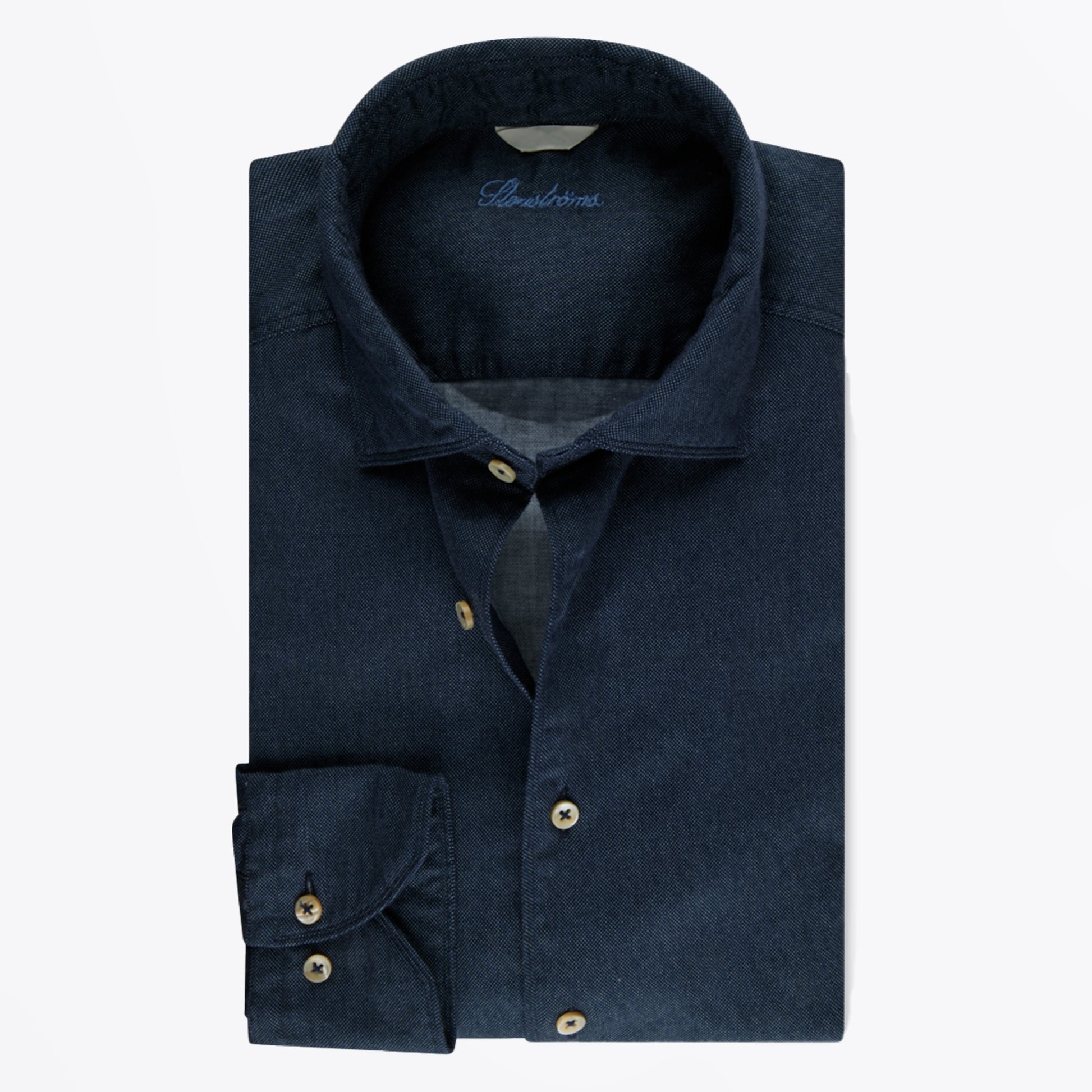 Luxury menswear designer Stenstroms specialise in producing signature professional and casual apparel for the style-savvy gent. Update your summer shirt options with this Stenstroms option. Crafted in a cotton material, this navy shirt has a collared neckline, a mother of pearl button up fastening, and buttoned cuffs. Wear this shirt with a pair of MMX trousers for a styled-up summer look.