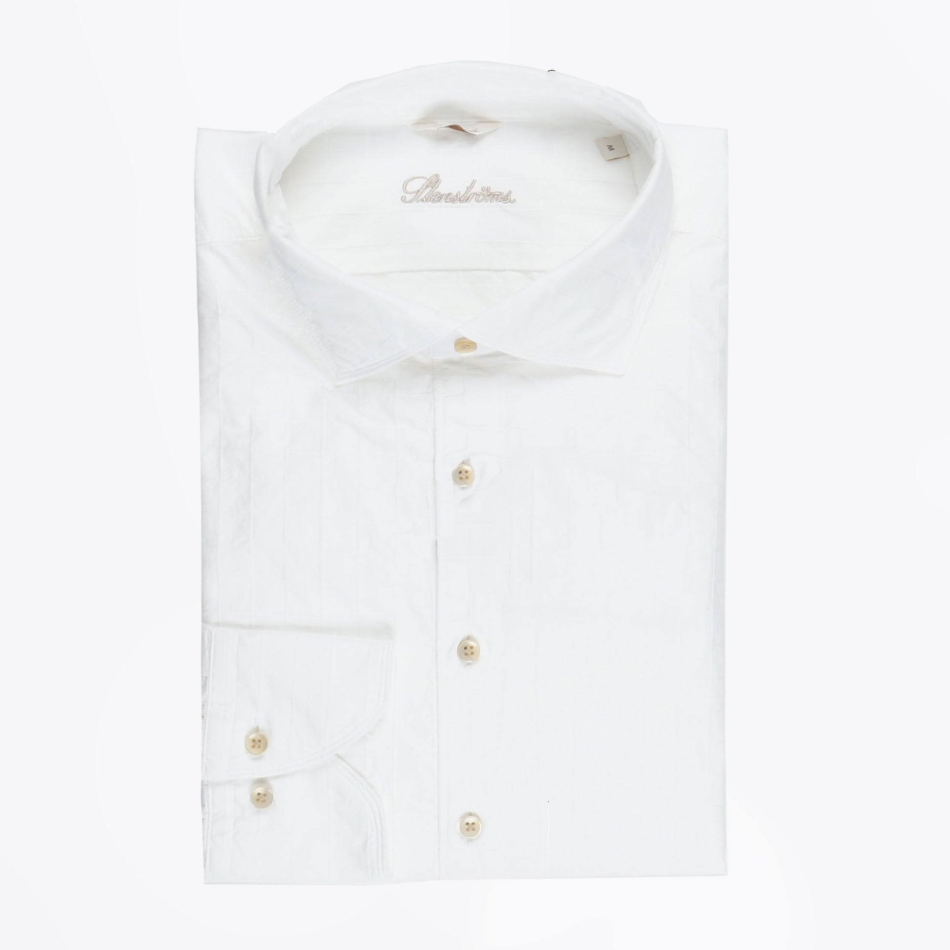 Luxury menswear designer Stenstroms specialise in producing signature professional and casual apparel for the style-savvy gent. Update your summer shirt options with this Stenstroms option. Crafted in a cotton material, this white shirt features a square texture, with a collared neckline, a mother of pearl button-down fastening, and buttoned cuffs. Wear this shirt with a pair of shorts for a styled-up summer look.