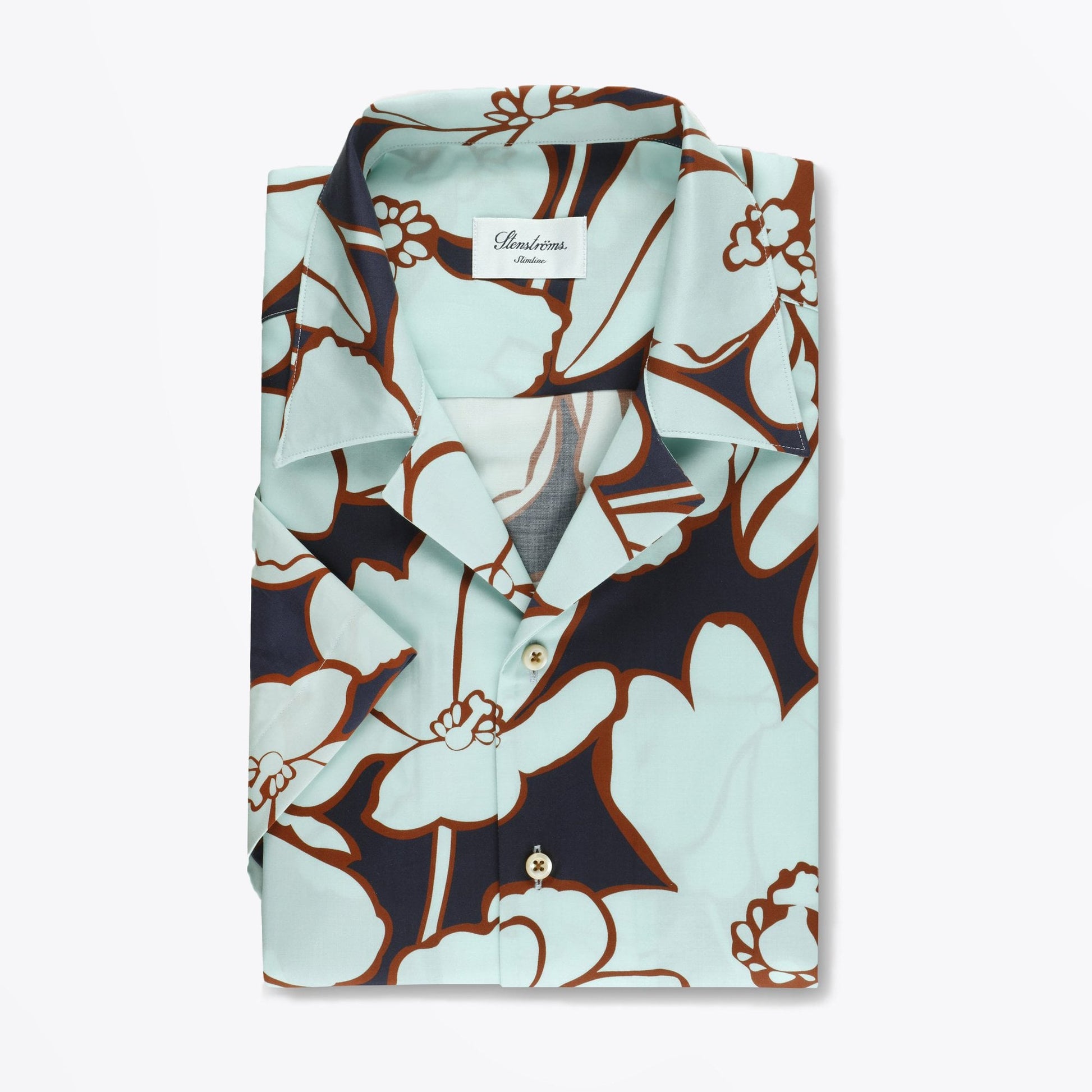 Luxury menswear designer Stenstr��ms specialise in producing signature professional and casual apparel for the style-savvy gent. Update your classic shirt collection with some designer branding. This short-sleeved shirt features a fun floral print in blue tones, and a contrasting brown colour. This shirt also has a button-down fastening using mother of pearl buttons. Style this shirt with a pair of MMX chino shorts for a great weekend outfit in the warmer months.