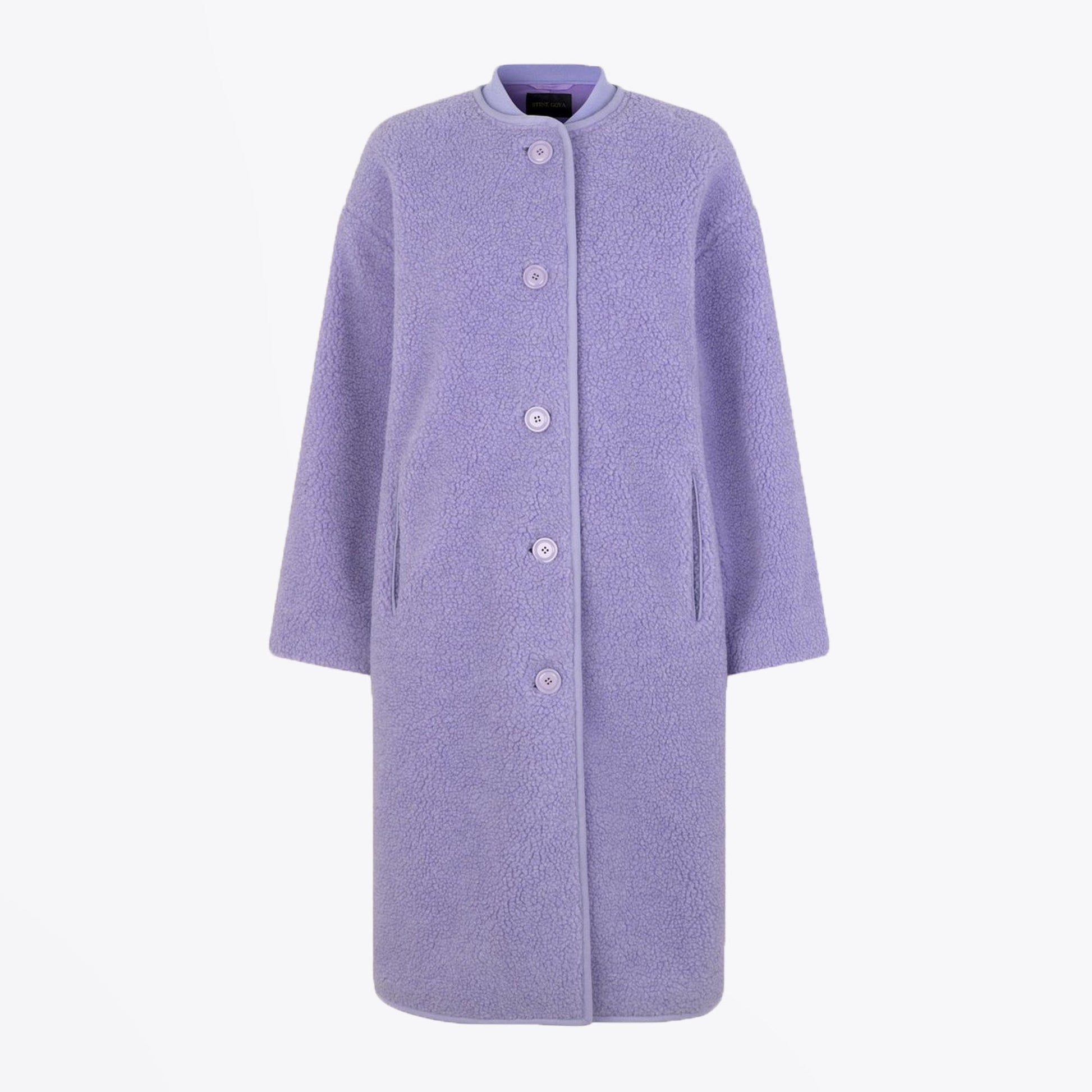 Danish designer Stine Goya launched her eponymous label in 2006 with a rich exploration of colour and print. Drawing on inspiration from the design and art worlds, each collection is built on a strong foundation of flattering cuts, simple yet quality fabrics and bespoke hand-drawn prints by the brands in-house team. Stine Goya's Beth Coat is designed for a regular fit and features wide sleeves and welt pockets. This lilac midi coat has been crafted in teddy material and features large lilac button fastenings on the front and is fully lined. Layer this beautiful coat over your favourite look from the collection.