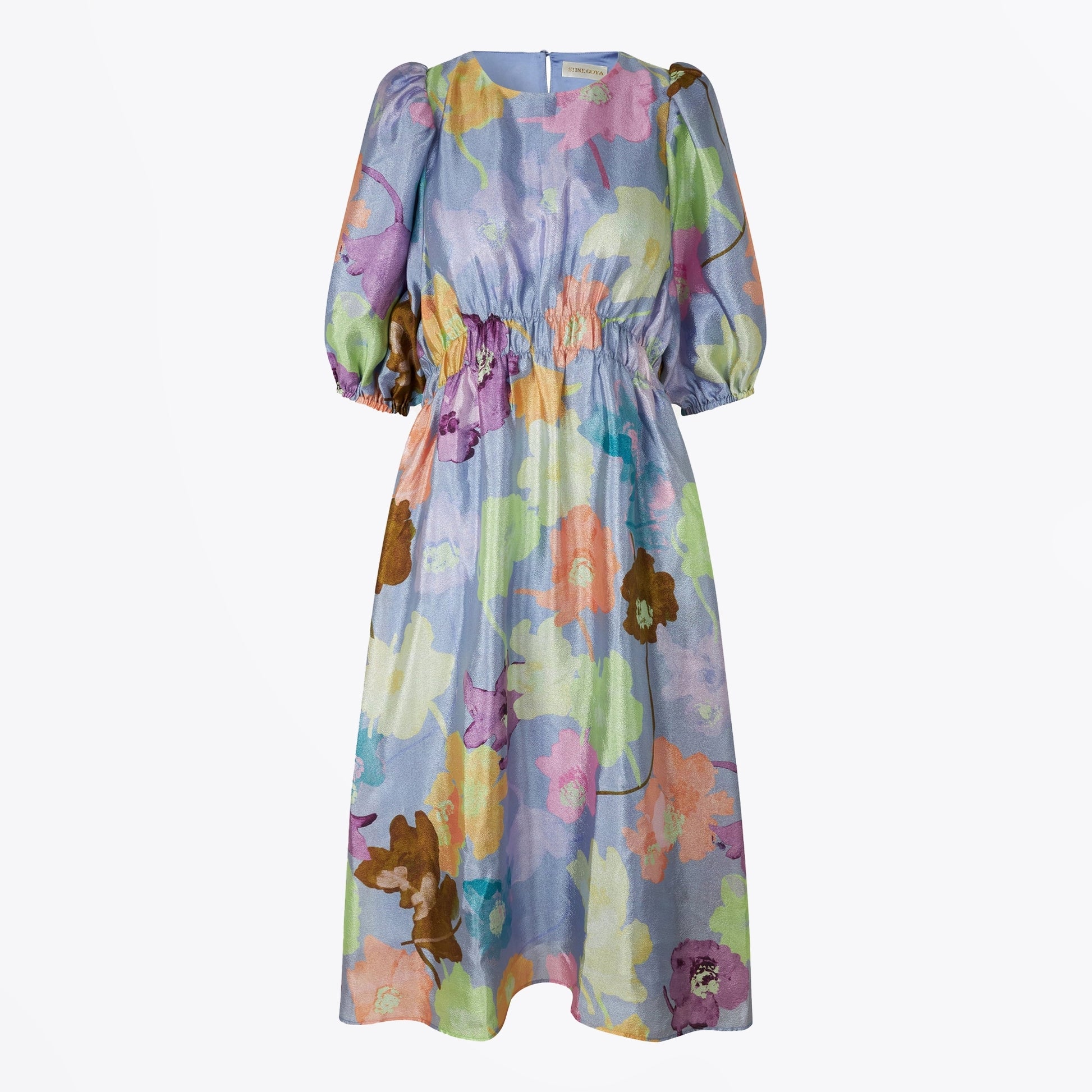 - Elizabeth Textured Poly Dress - Filigran Flower Blue