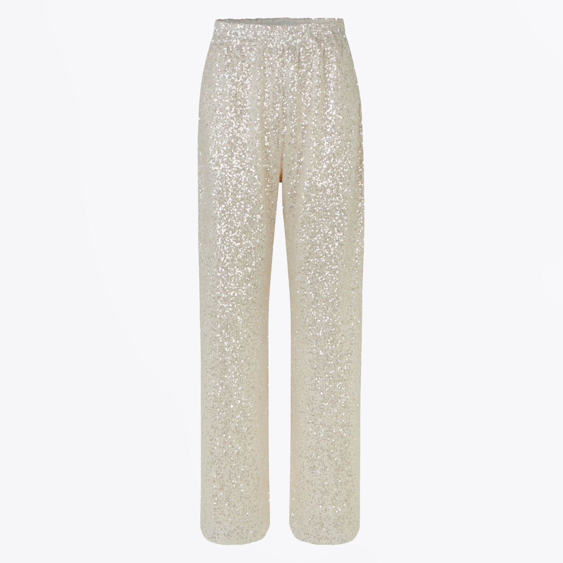 Danish designer Stine Goya launched her eponymous label in 2006 with a rich exploration of colour and print. Drawing on inspiration from the design and art worlds, each collection is built on a strong foundation of flattering cuts, simple yet quality fabrics and bespoke hand-drawn prints by the brands in-house team. Add some fun sparkle to your dressy trousers this season with this Stine Goya option. Crafted in a sparkly silver material, these trousers have a straight leg shape, and side pockets. Wear these trousers with the matching pair of Stine Goya top and some strappy heels.