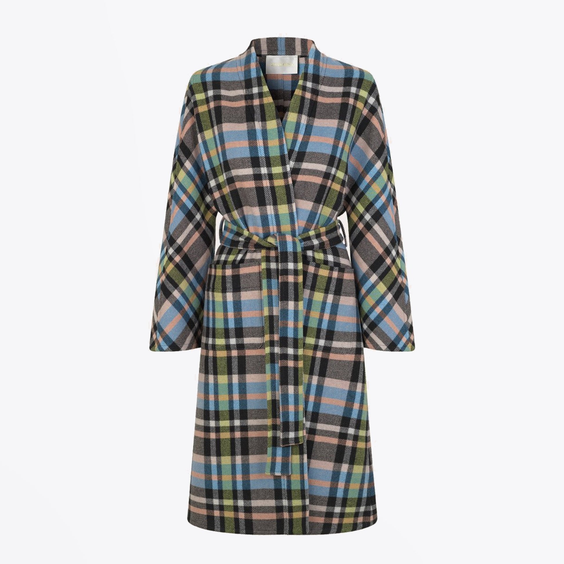 Danish designer Stine Goya launched her eponymous label in 2006 with a rich exploration of colour and print. Drawing on inspiration from the design and art worlds, each collection is built on a strong foundation of flattering cuts, simple yet quality fabrics and bespoke hand-drawn prints by the brands in-house team. Stine Goya's Fernanda Coat is designed for a regular fit and is made of recycled wool. This open front mid length coat features front pockets, long belt and wide sleeves. Layer over your favourite look from the collection.