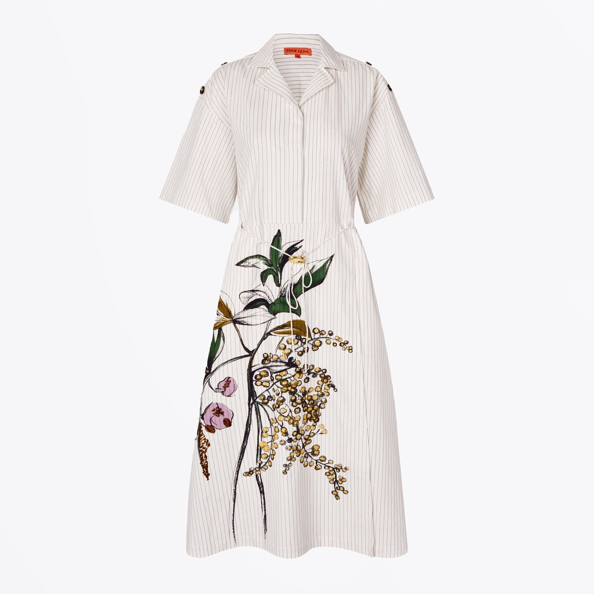 Danish designer Stine Goya launched her eponymous label in 2006 with a rich exploration of colour and print. Drawing on inspiration from the design and art worlds, each collection is built on a strong foundation of flattering cuts, simple yet quality fabrics and bespoke hand-drawn prints by the brands in-house team. Add some fun to your wardrobe with this Stine Goya option. This midi A-line dress features a half-button front, short sleeves, and a simple striped pattern overlaid with a delicate floral motif. A perfect blend of casual and elegant, it's ideal for any occasion.