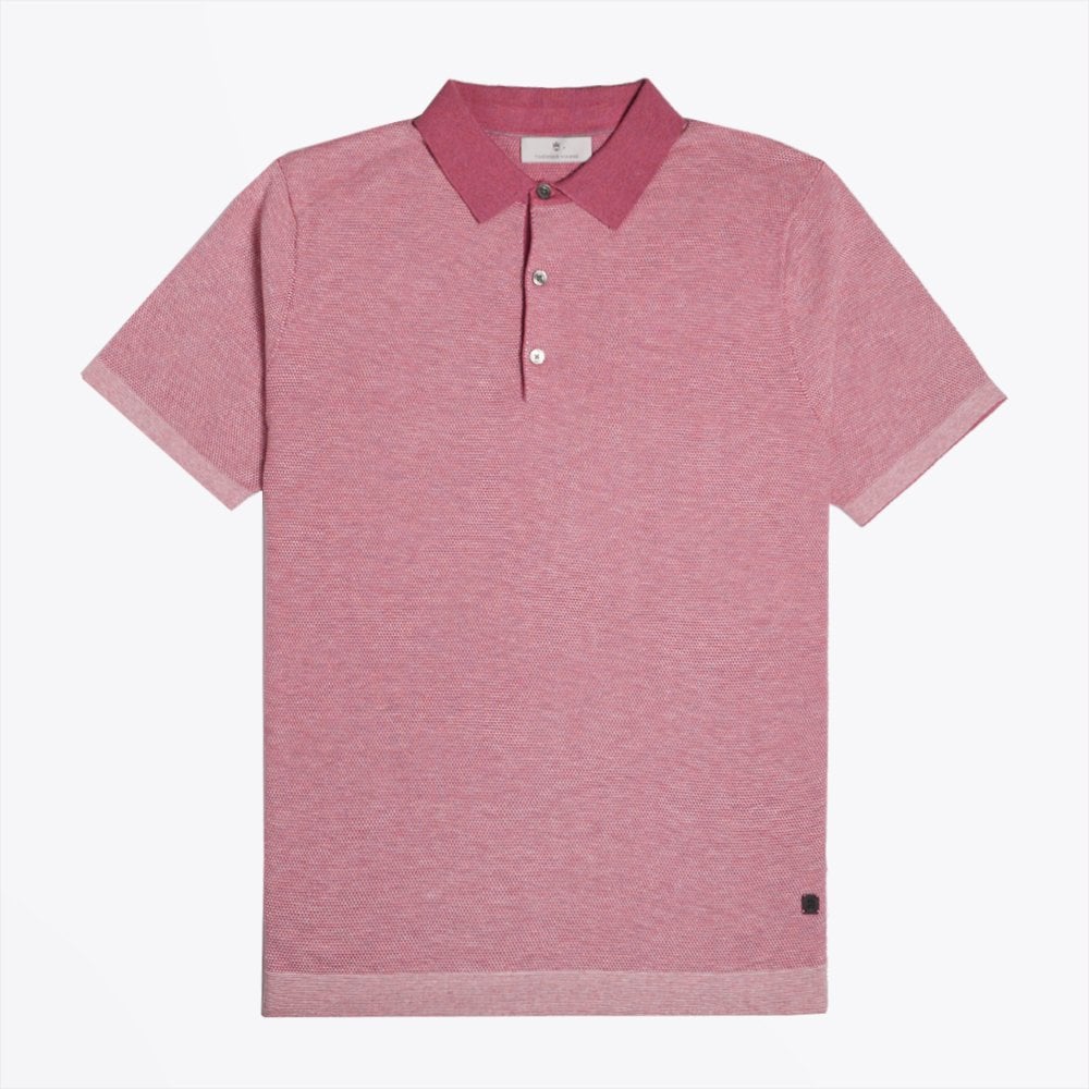 A classic yet contemporary brand, Thomas Maine is known for its sophisticated and masculine pieces. This pink short-sleeve knitted polo shirt is crafted in a premium cashmere blend is made from the finest cashmere blend yarns. It’s natural soft touch and luxurious feel gives extra comfort to the garment and it is designed in a supremely wearable style. Features of this mid-weight polo shirt with slightly textured knit include three button closure, ribbed collar, Thomas Maine leather tab near the hem and elasticated ribbed cuffs and hem. Pair with jeans or chinos for a relaxed weekend look, perfect for the new season!