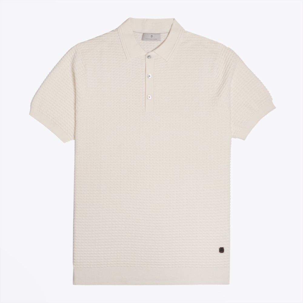 A classic yet contemporary brand, Thomas Maine is known for its sophisticated and masculine pieces. This cream short-sleeve knitted polo shirt is crafted in a premium cashmere blend is made from the finest cashmere blend yarns. It’s natural soft touch and luxurious feel gives extra comfort to the garment and it is designed in a supremely wearable style. Features of this mid-weight polo shirt with waffle textured knit effect include three button closure, collar with raised details, Thomas Maine leather tab near the hem and elasticated ribbed cuffs and hem. Pair with jeans or chinos for a relaxed weekend look, perfect for the new season!