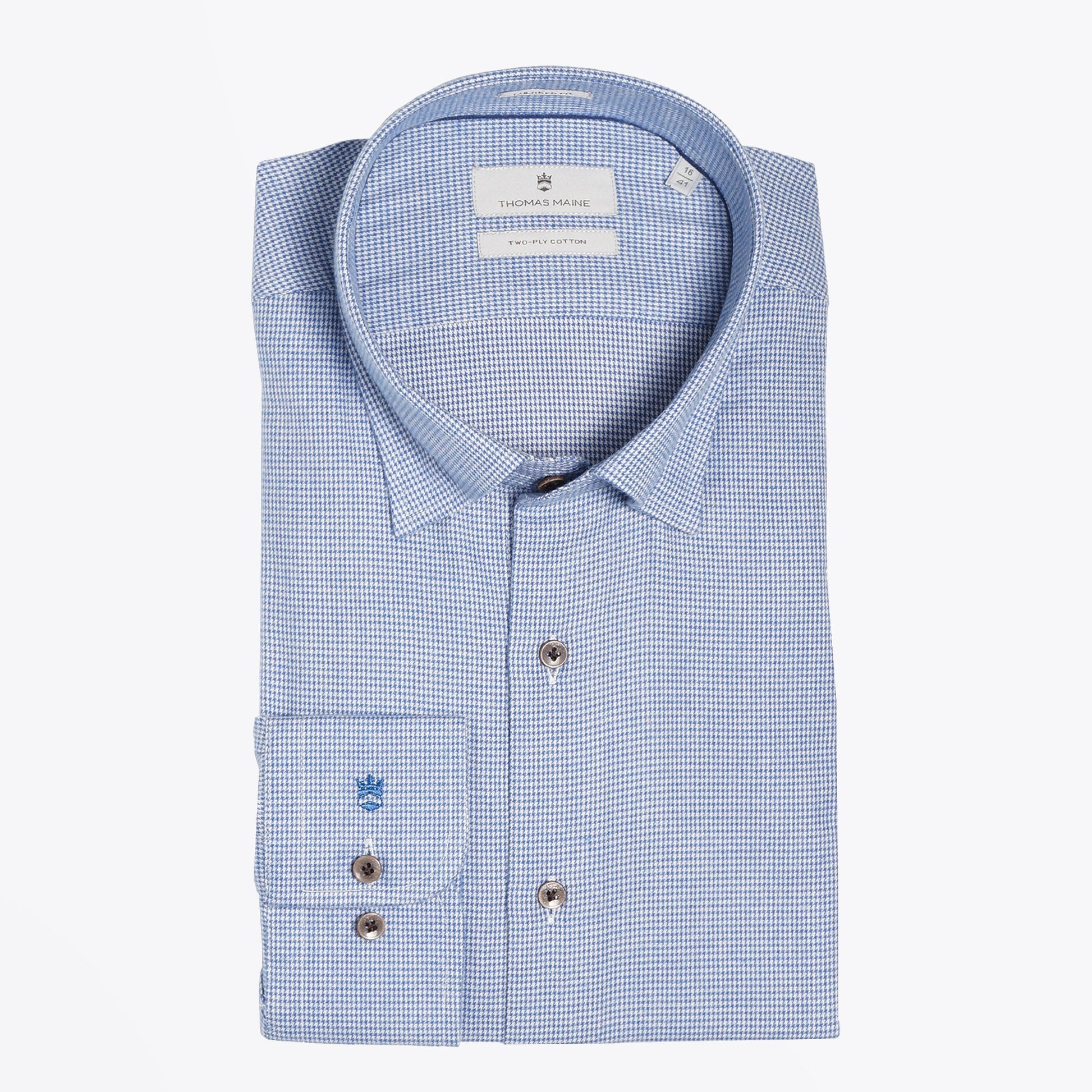 Five decades of fine tailoring experience have gone into the creation of Thomas Maine’s sophisticated yet affordable shirt collection. This stunning shirt in a blue dogtooth pattern is made from premium cotton developed for carefree, all-day performance. It features a contemporary and stylish button-under collar and a two-button mitered cuff. This shirt will have you looking stylish for all occasions.