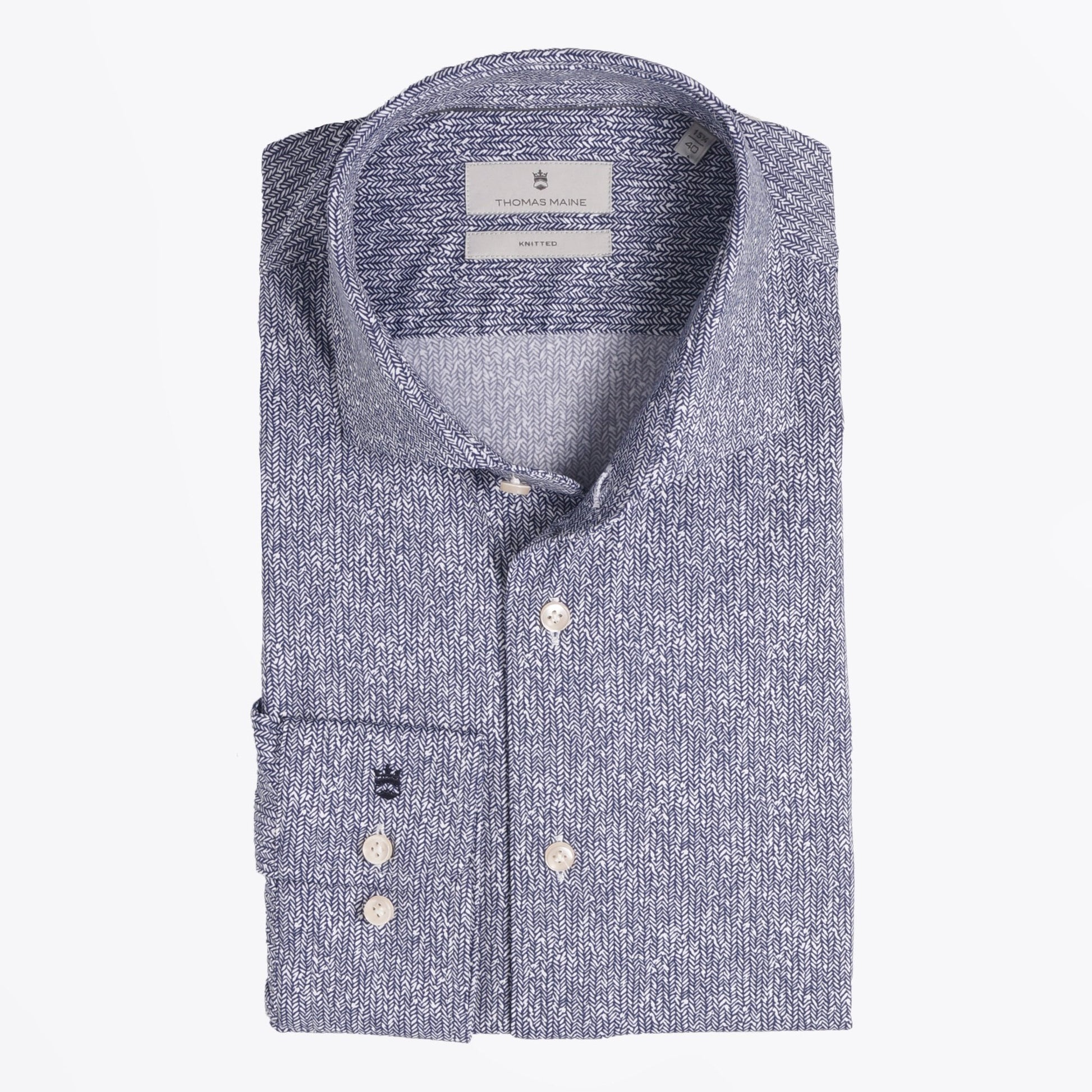 - Roma - Modern Kent Knitted Lux Shirt - Navy