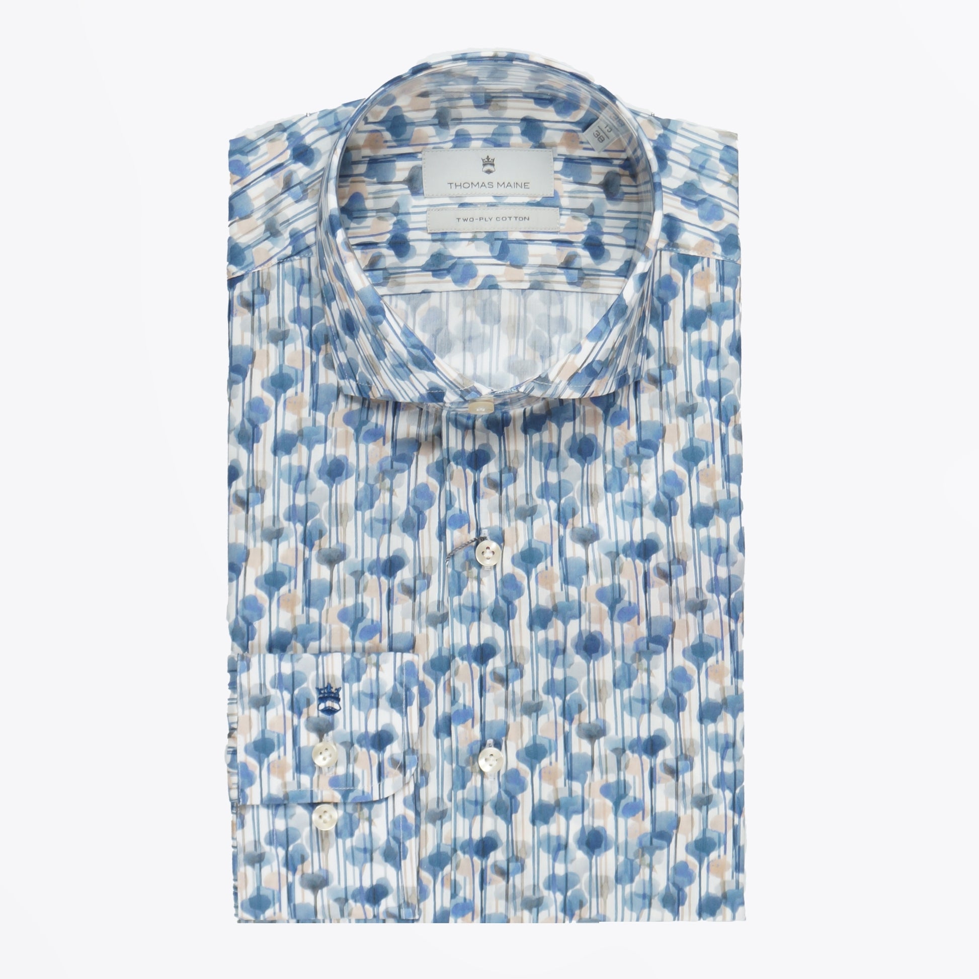 A classic yet contemporary brand, Thomas Maine is known for its sophisticated and masculine pieces. The perfect way to add variety to your shirt collection, this shirt is crafted in collaboration with Liberty London, and features a paint trop print in shades of blue, with a white mother of pearl button-down fastening, buttoned cuffs, and an embroidery of the Thomas Maine logo on the cuff in a navy blue thread. Wear this shirt under a smart jacket and with some MMX trousers for a great work look.
