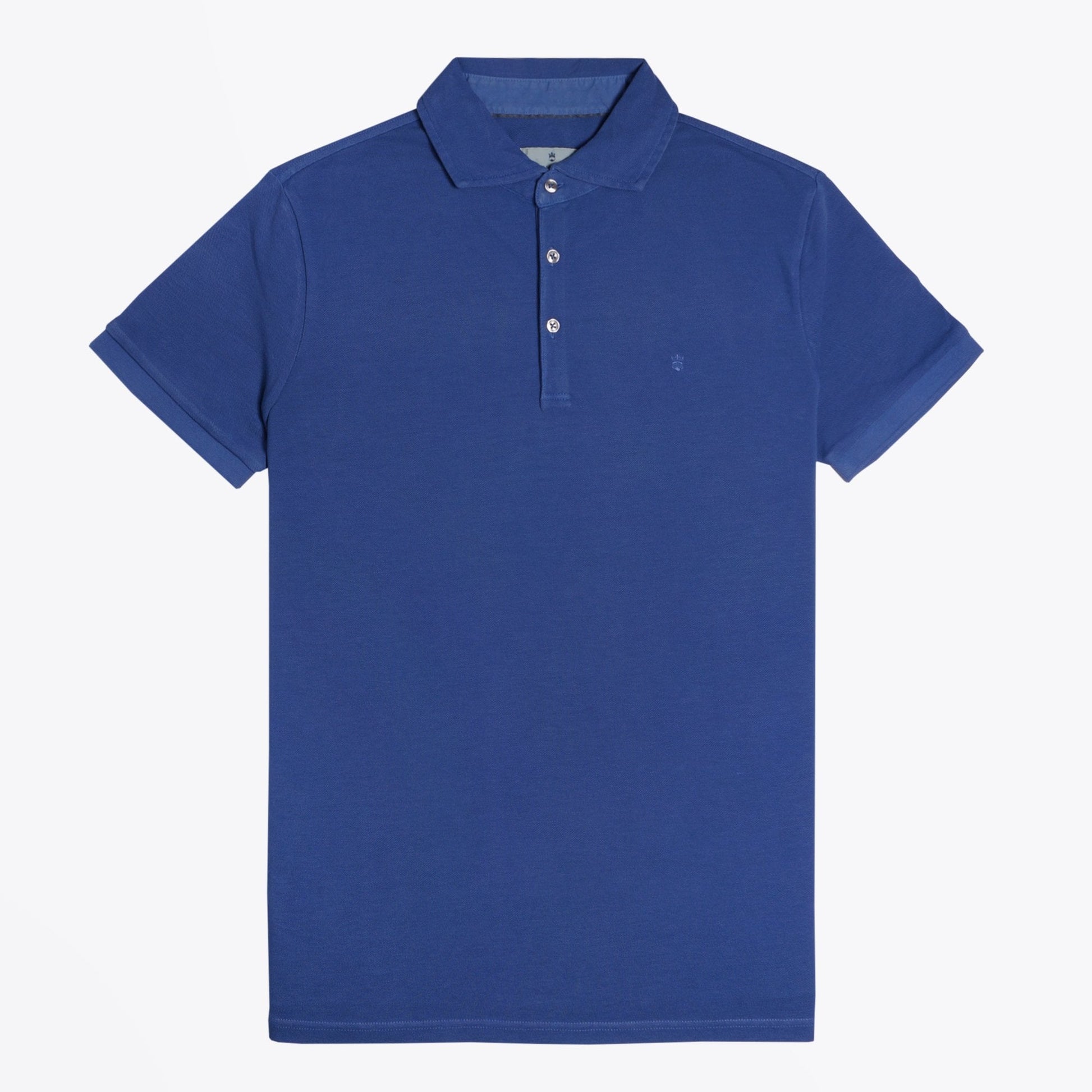 A classic yet contemporary brand, Thomas Maine is known for its sophisticated and masculine pieces. This dark blue polo shirt is crafted in washed pique cotton and designed in a supremely wearable style. Crafted from a premium cotton and cut for a regular-fit, this short-sleeve t-shirt features a half button-down front with grey sheen buttons, classic collar and topstitching details. This transitional piece is expertly finished with side slits with pale blue stripe, elasticated ribbed cuffs on the sleeves and classic Thomas Maine logo on the chest. Plain back. Pair with jeans or chinos for a relaxed weekend look, perfect for the new season!